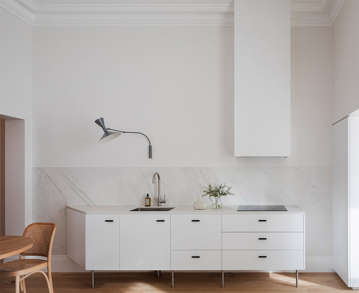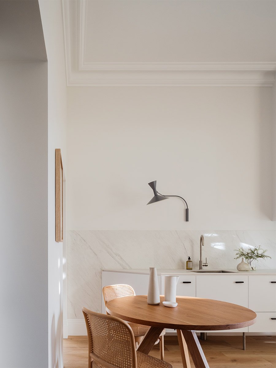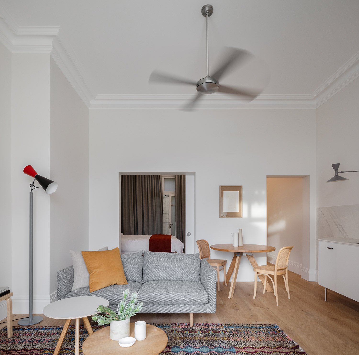Located in a heritage listed building in Potts Point, Basement Apartment relishes in the reveal. A steep descent from the street leads to an unexpected light and bright one bedroom abode looking out to Sydney’s skyline.