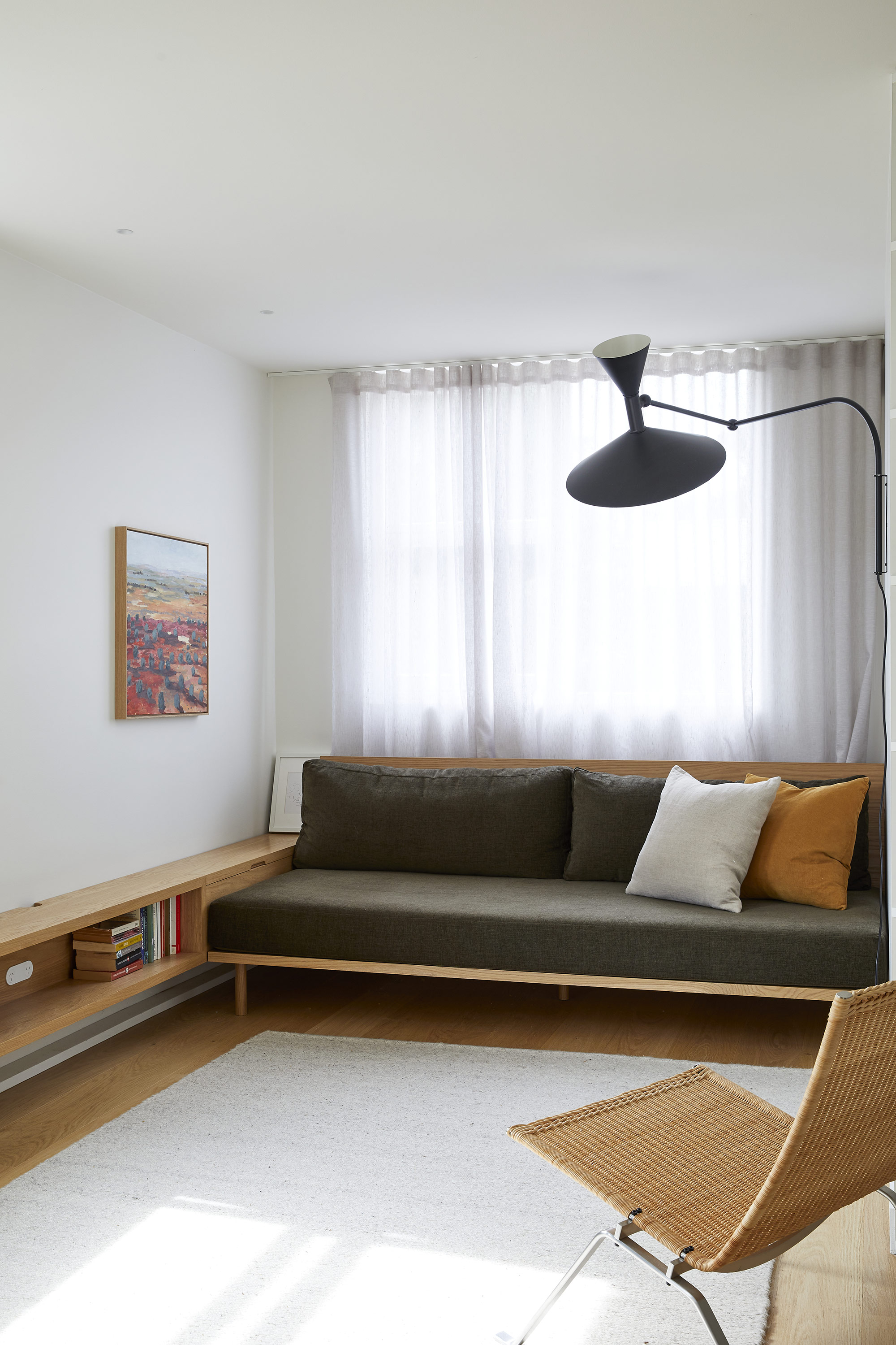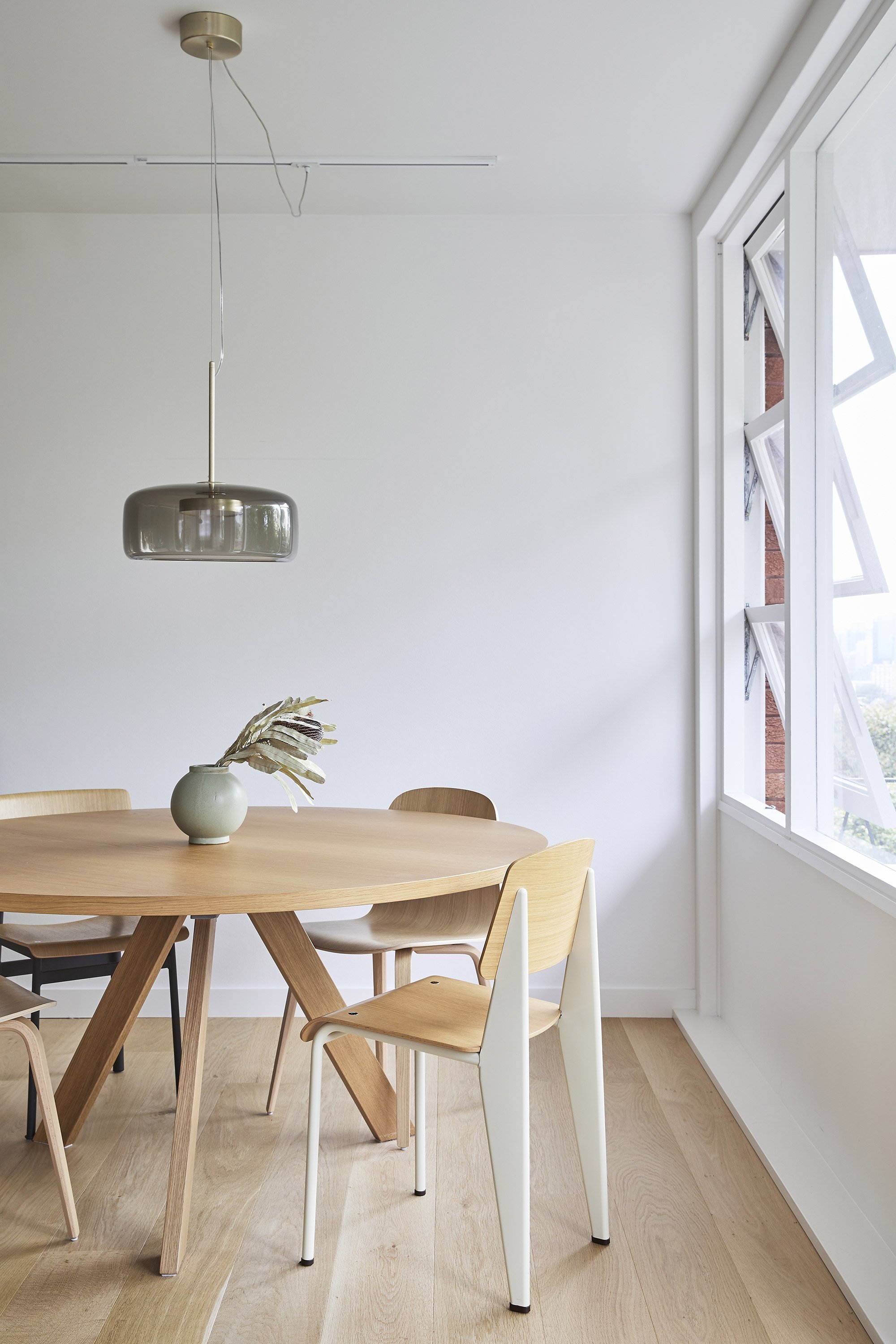 Director Brad Swartz's own apartment is defined by its clean, minimal design. According to Swartz, the design was based around the relocation of the kitchen north-west corner to the centre of the apartment, allowing the living space to be located in the old kitchen to make the most of the natural light and city views.