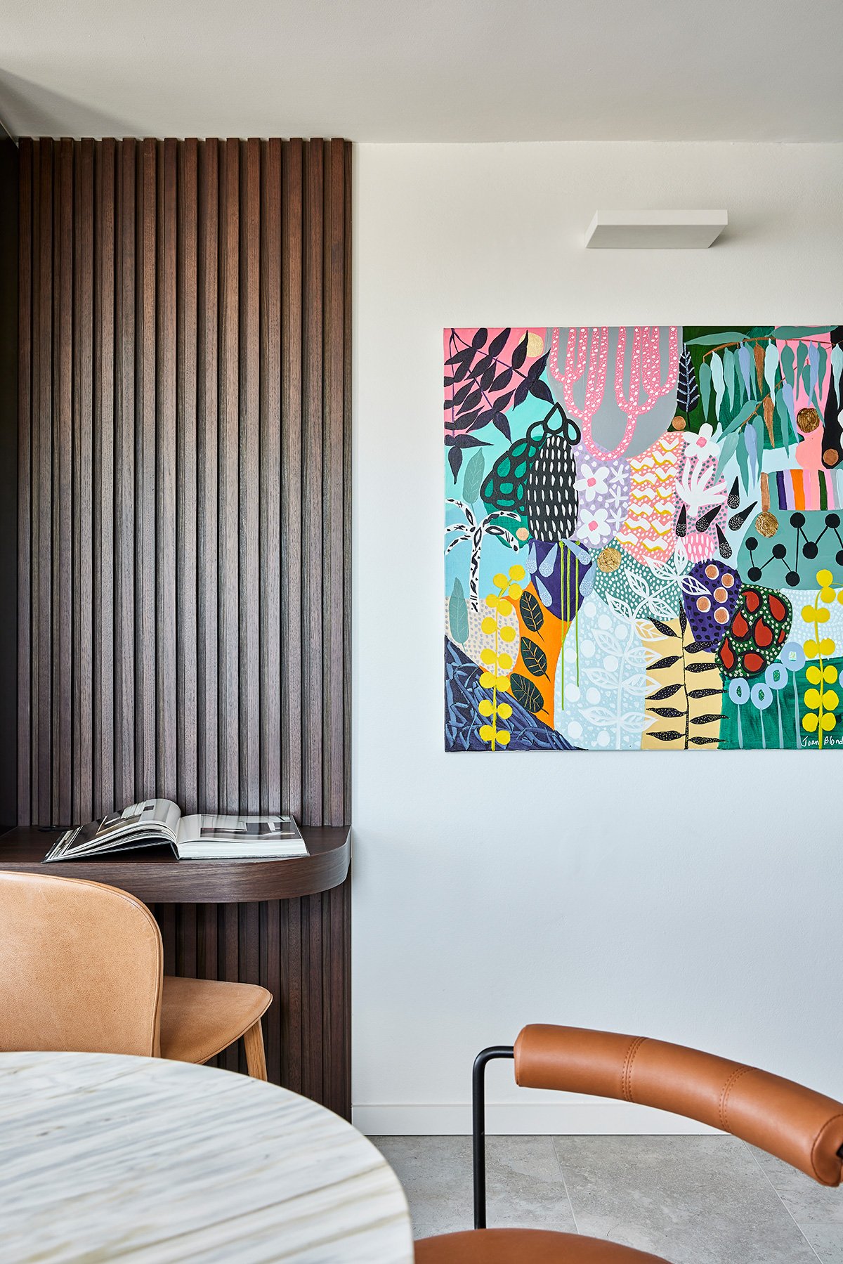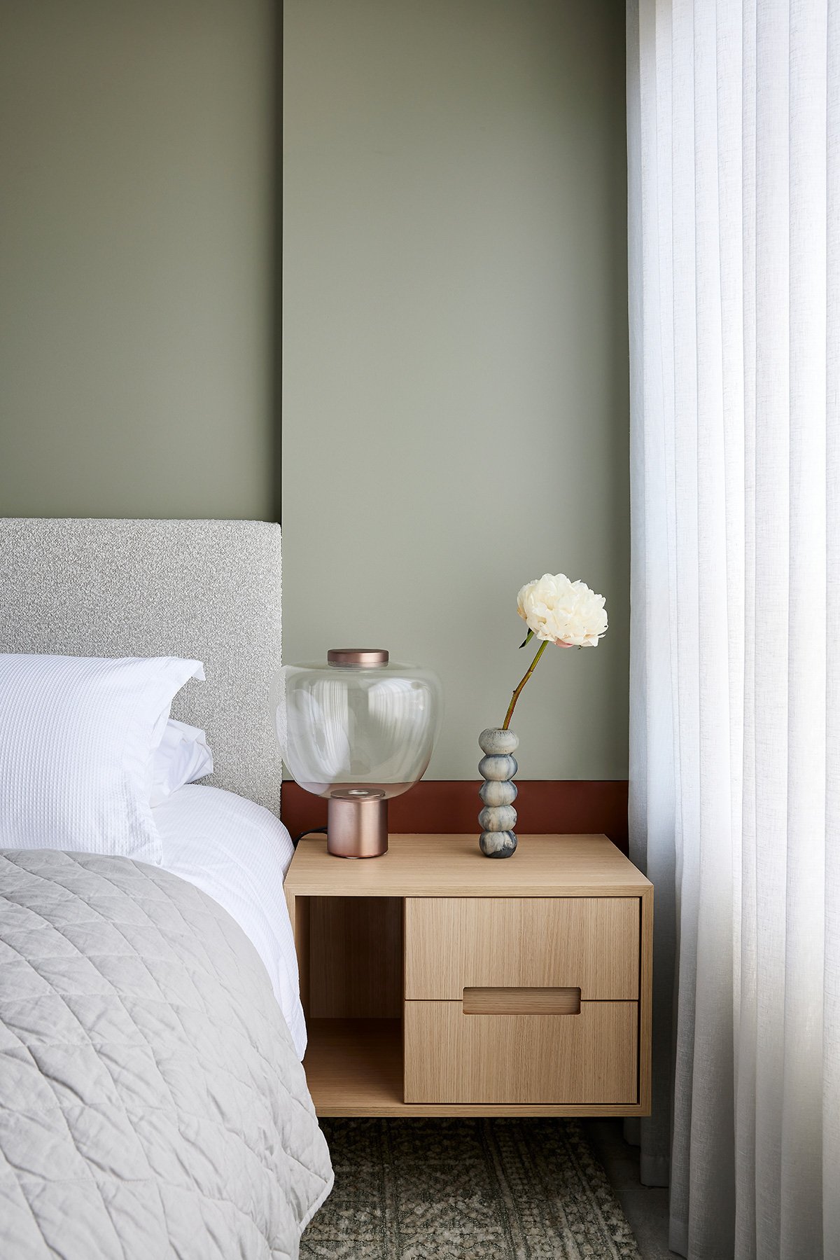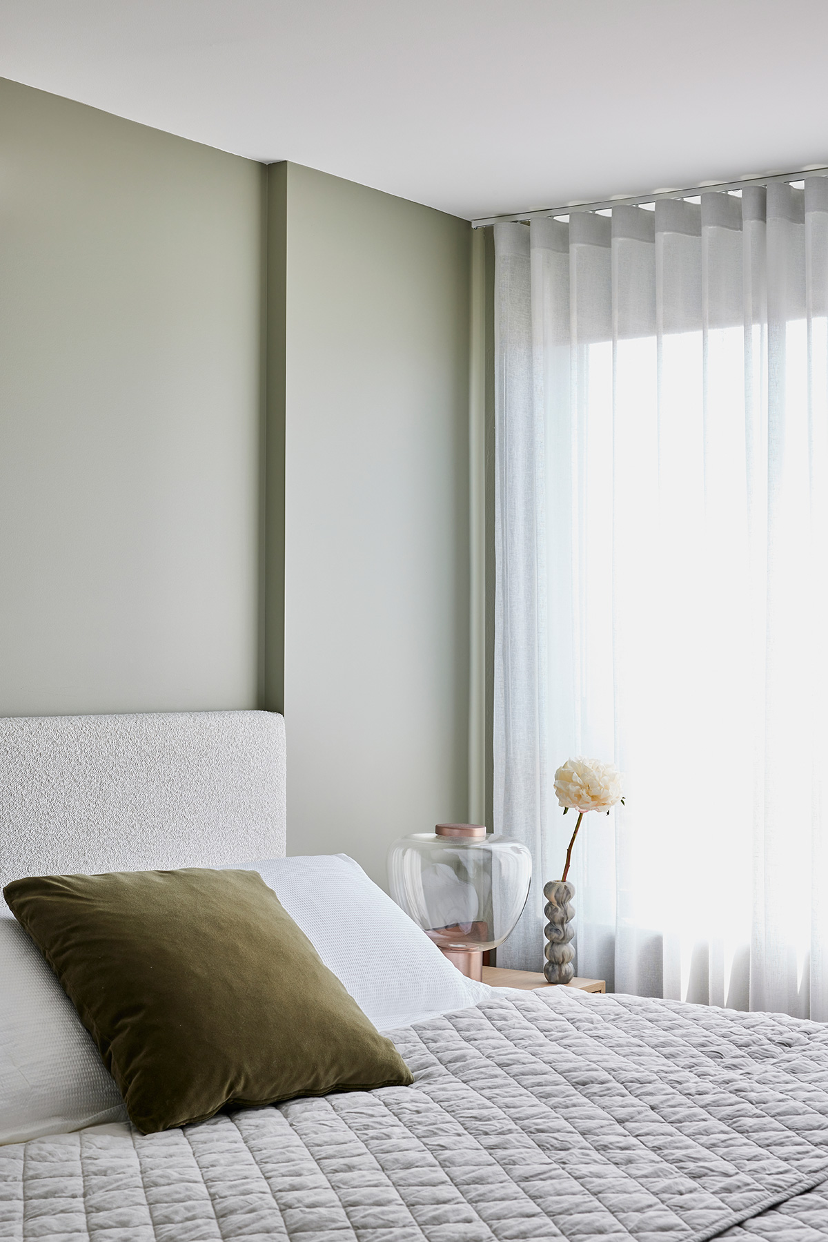 The Kirribilli apartment also features the Vistosi’s Riflesso Table Lamp in the bedroom, made of clear mouth-blown glass with a copper metal finish, that endearingly evokes childhood memories and adds a touch of elegance.