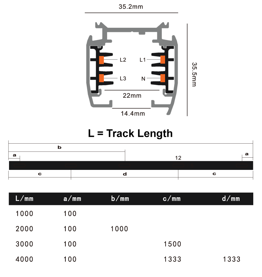 The Arcolight Three Circuit Track (3C) is an aluminium track system compatible with all Arcolight three circuit track lights. Rated IP20 with a 16A maximum load, it is available for ceiling surface or suspended mounting in 1m, 2m, and 3m lengths. Live ends are sold separately. Available in textured black or textured white finish. A range of connectors and suspension kits are sold separately. Part of the Arcolight collection curated by Studio Italia.