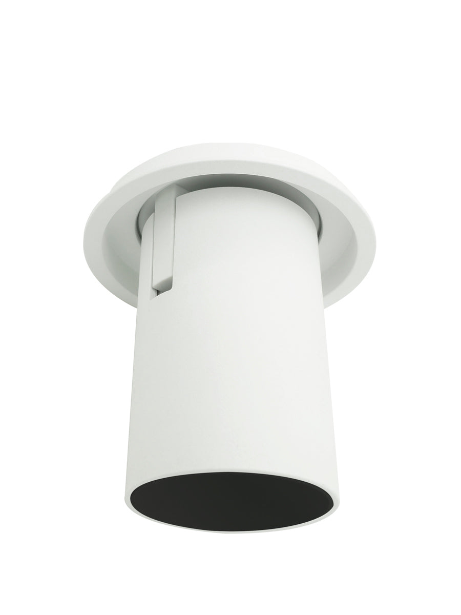 Piega adjustable barrel spot light in white finish. Extendable fixture with 350 degree rotation and a 90 degree adjustable angle. CREE COB 12w LED, 3000k, 900lm, CRI 90, dimmable with 38 degree beam spread. The adjustability of the Piega fixture makes it ideal for a wide range of residential and commercial applications.