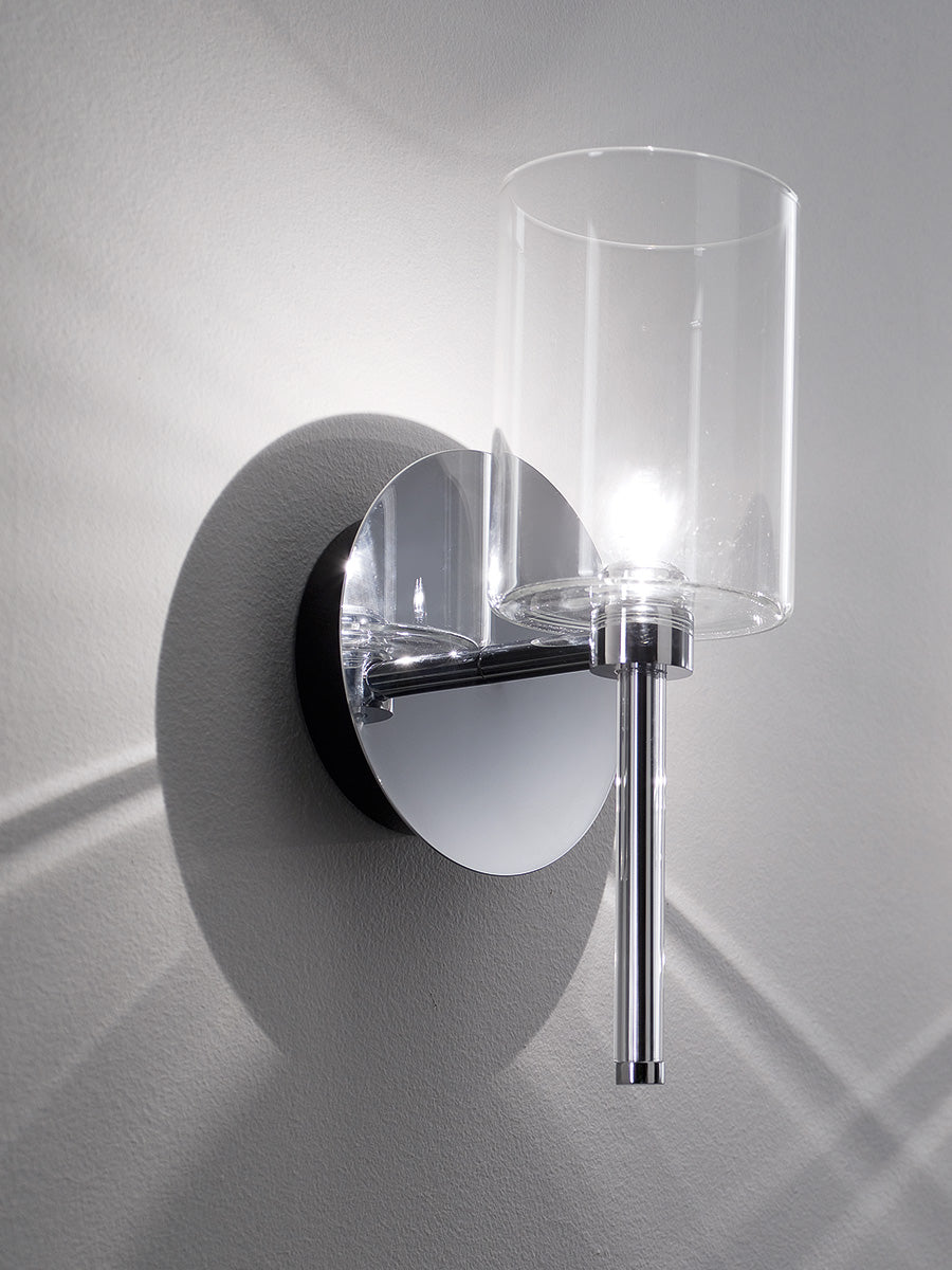 The Spillray collection of wall lamps is an elegant shape play on upturned goblets. The diffusers are made of glass with chrome-plated metal frame, gracefully illuminating any area. Available in several finish options.