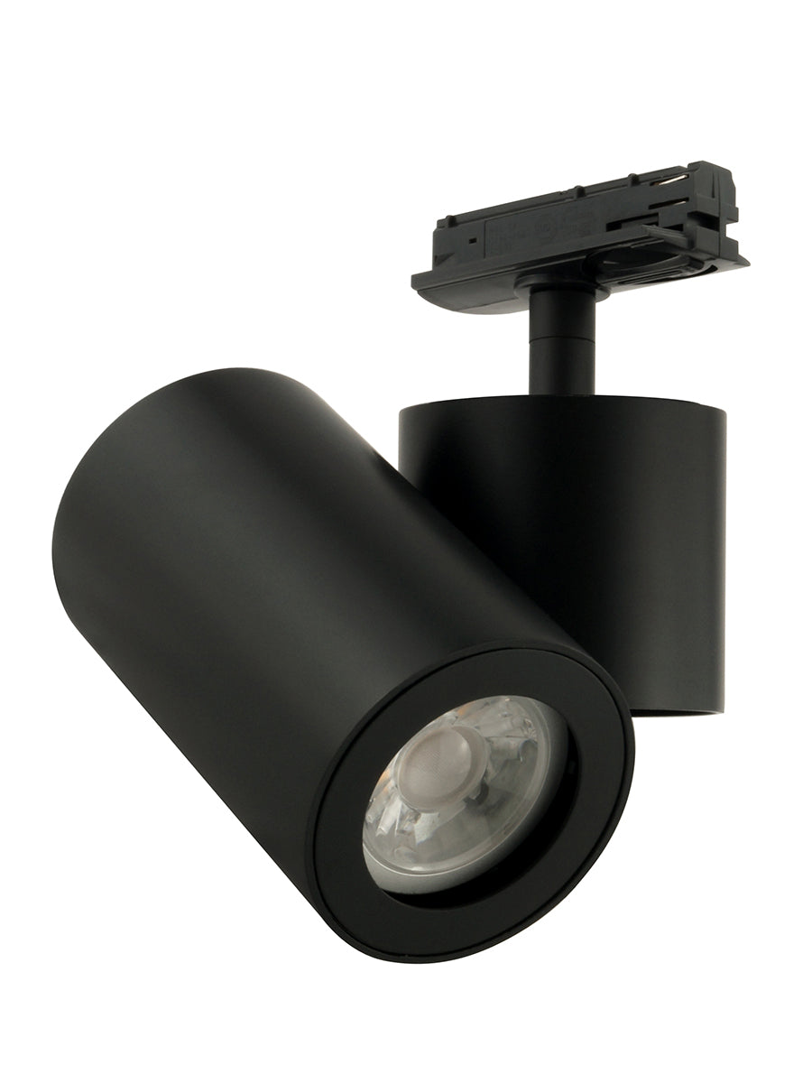 The French designed Barro Single is an adjustable track spotlight with a clean yet soft design ideal for a range of spaces. Compatible with single circuit tracks. Takes 1 x GU10 35W (Max) LED or halogen globes. Available in black finish.