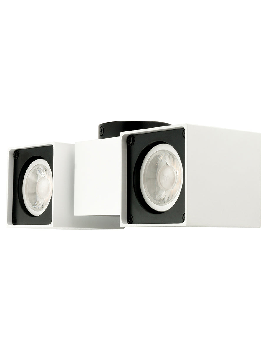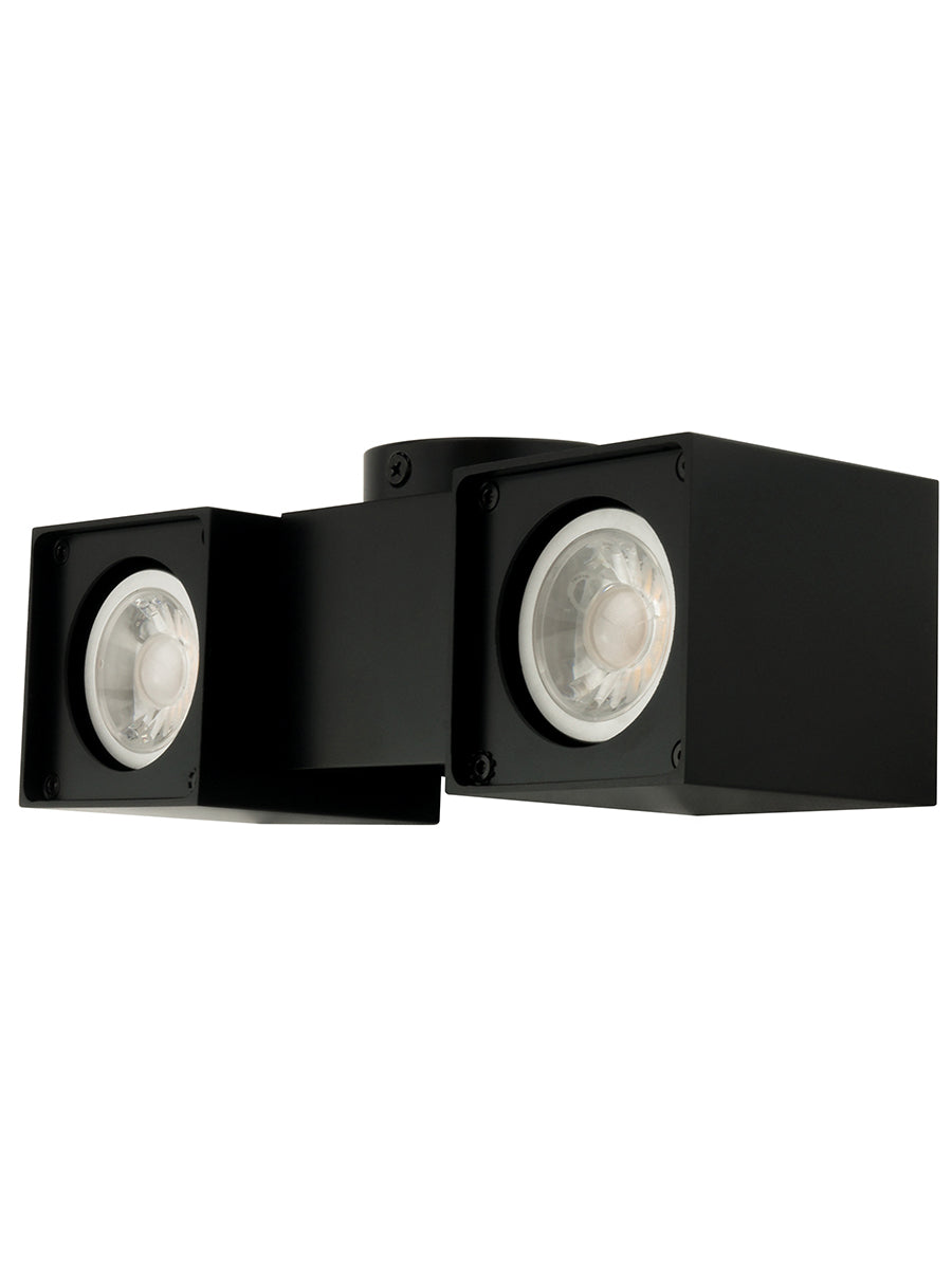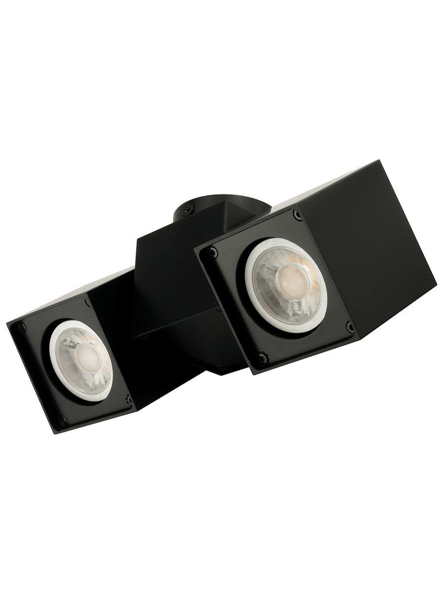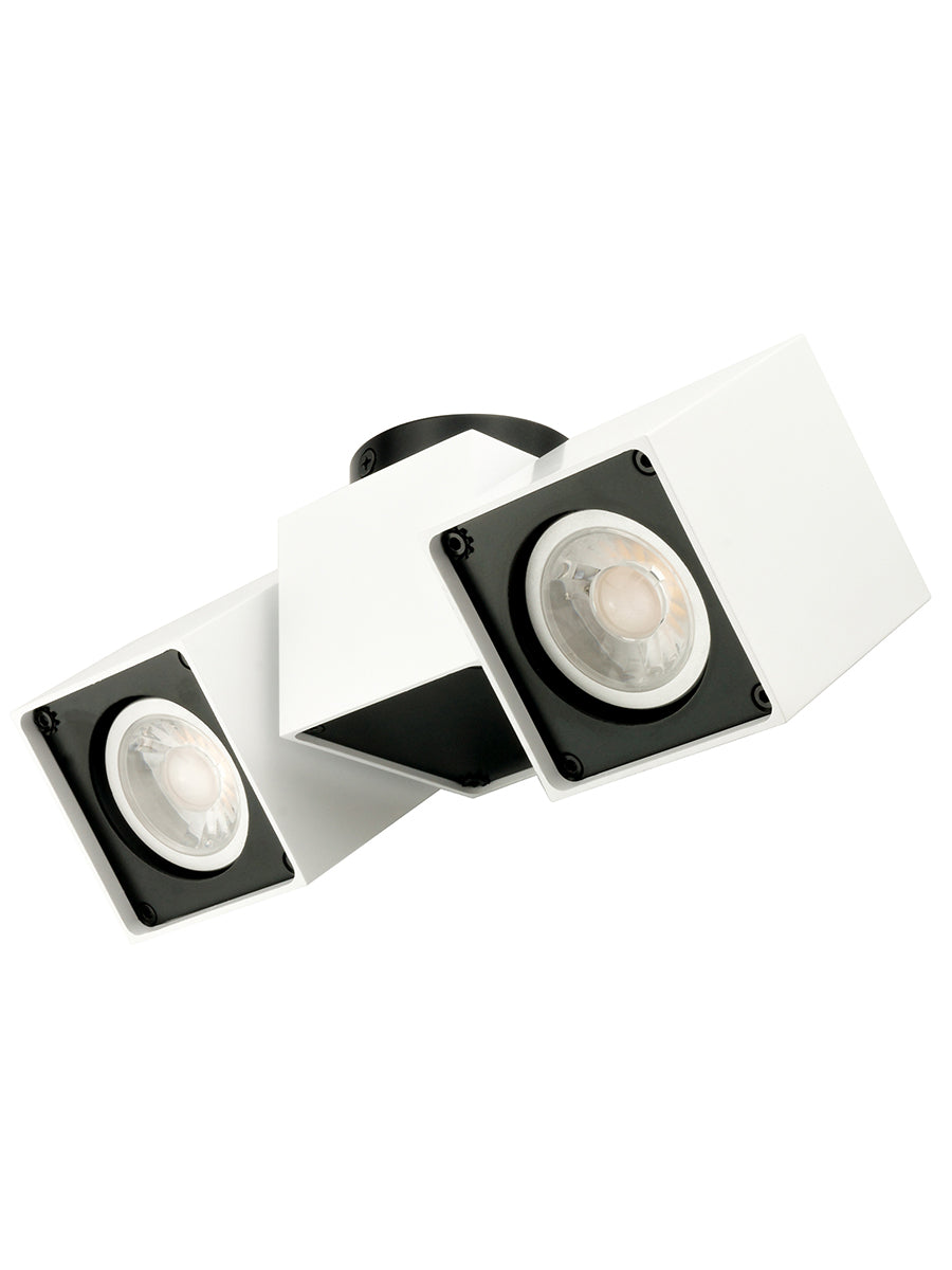 The Squad Double is a ceiling mounted adjustable spotlight made from extruded aluminium. Takes 2 x GU10 35W (Max) LED or halogen globe. Available in black or white finish.