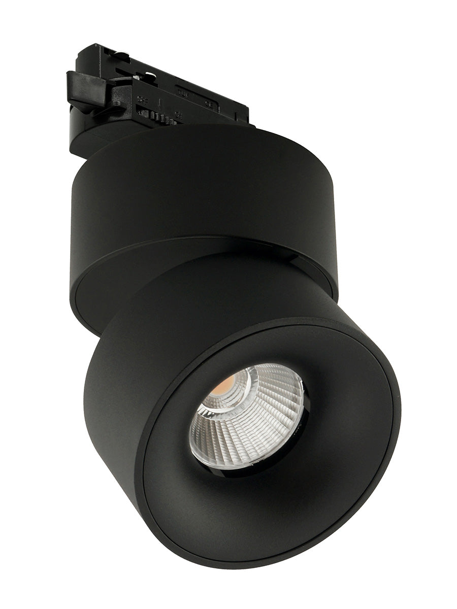 The Tommy track mounted spot light with CREE COB LED light source and 90 degree adjustability. Die cast alloy body with painted finish. Phase dimmable with built-in driver. Available in black or white finish. Compatible with single circuit track.