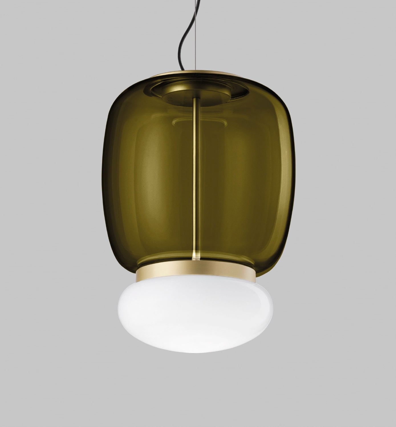 The Faro ceiling light, by Oriano Favaretto for Vistosi, draws inspiration from lighthouses, serving as a symbolic link between sea and land. Two glasses, one with a transparent finish evoking the Venetian lagoon, and the other glossy white representing the mainland, are united by a metal ring-a central and safe lighthouse element. Concealed within the white glass is an LED light source, offering a diffused and non-sparkling glow. Faro, a visible design centerpiece, stands out in any space, embodying stability and recognition from all angles. Available in a variety of finish options.