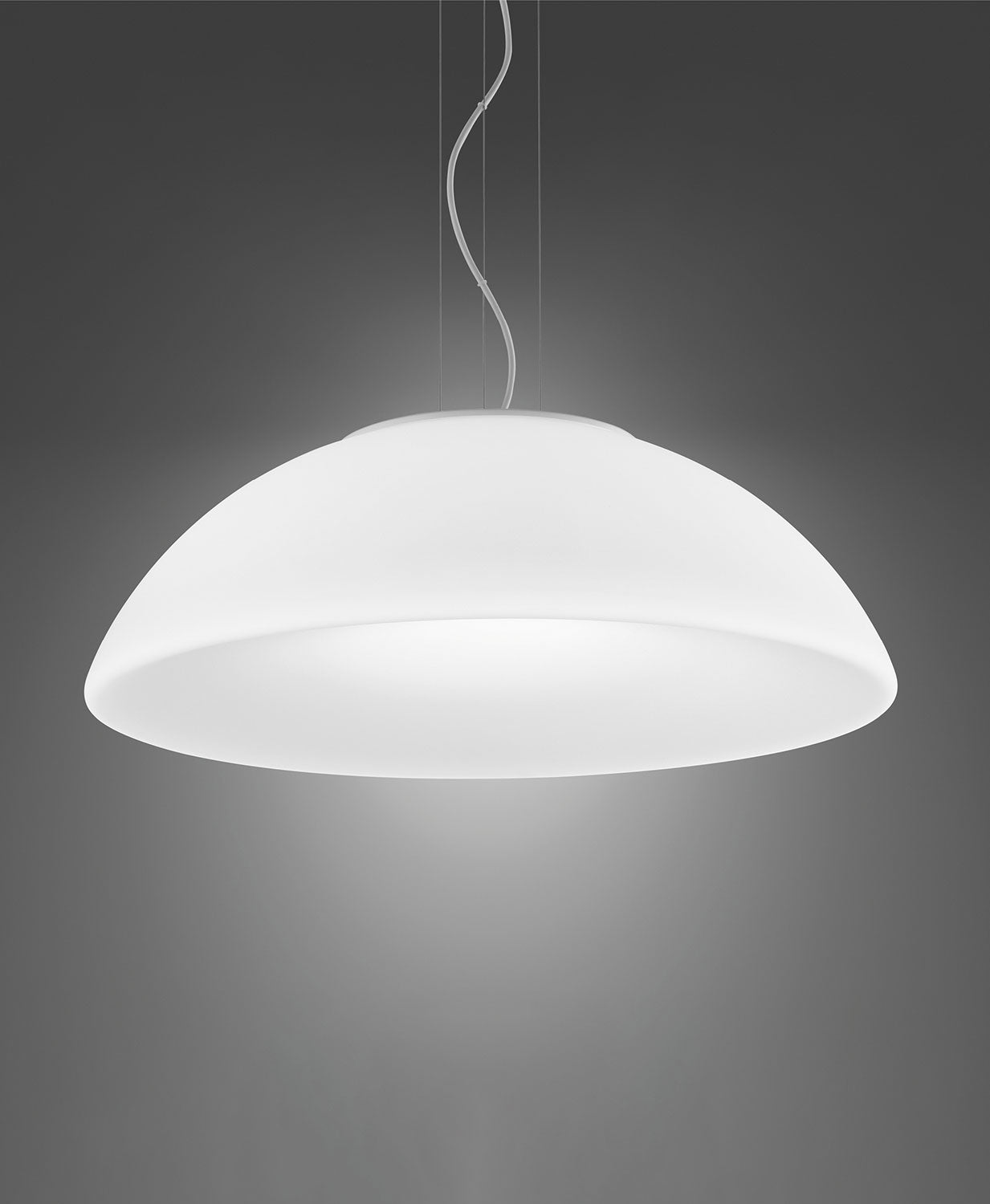 The Infinita is an elegant collection of pendant lights with mouth blown murano glass shades by Vistosi. The shape of the satin glass diffuser evenly distributes light within a space. The Infinita is available in various sizes with in-built LED or E27 lampholder version.