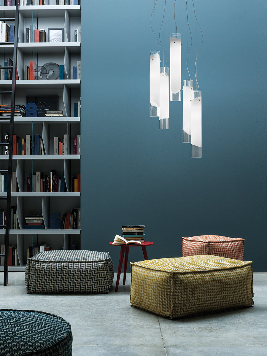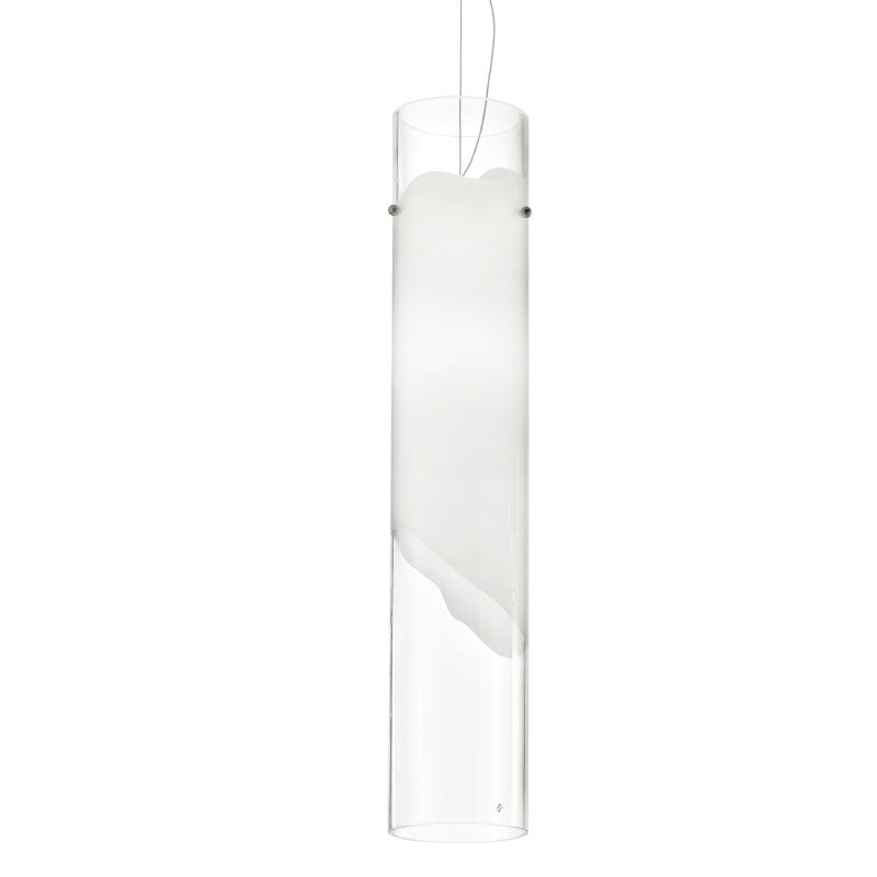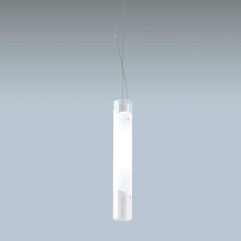 A collection of mouth-blown Murano glass pendants crafted using a technique which fuses a white glass band into several layers of crystal, creating the clear band tip at the ends of the fitting. Pendant available in a variety of versions and sizes.