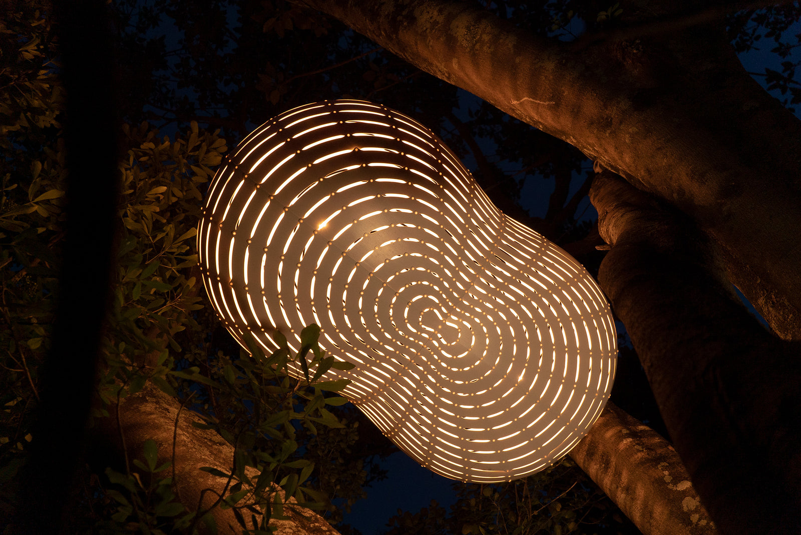 Cloud by David Trubridge was first launched in 2008 as part of the Spiral Islands installation of matching lights and settees. It was inspired by the clouds that David saw sitting over small islands across the Pacific Ocean, which were used by Polynesian navigators to find islands from afar. The original Cloud lights were made with frosted plastic but were later discontinued due to the negative environmental impact of the material. Cloud has been reimagined in this new version which is made almost entirely of bamboo plywood. This allows light to shine through while offering a similar visual lightness as the former translucent plastic version.