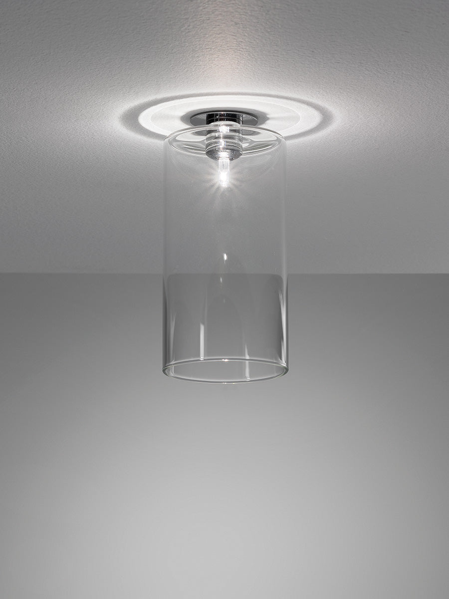 The Spillray collection of ceiling lamps is an elegant shape play on upturned goblets. The diffusers are made of glass with chrome-plated metal frame, gracefully illuminating any area. Available in several sizes and finish options.