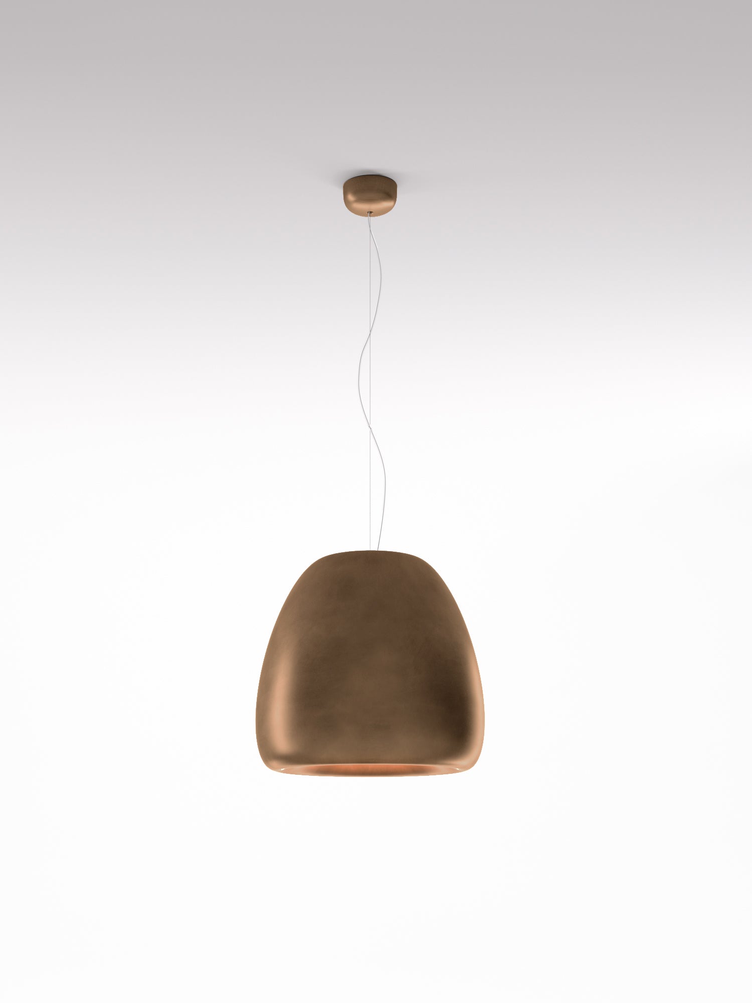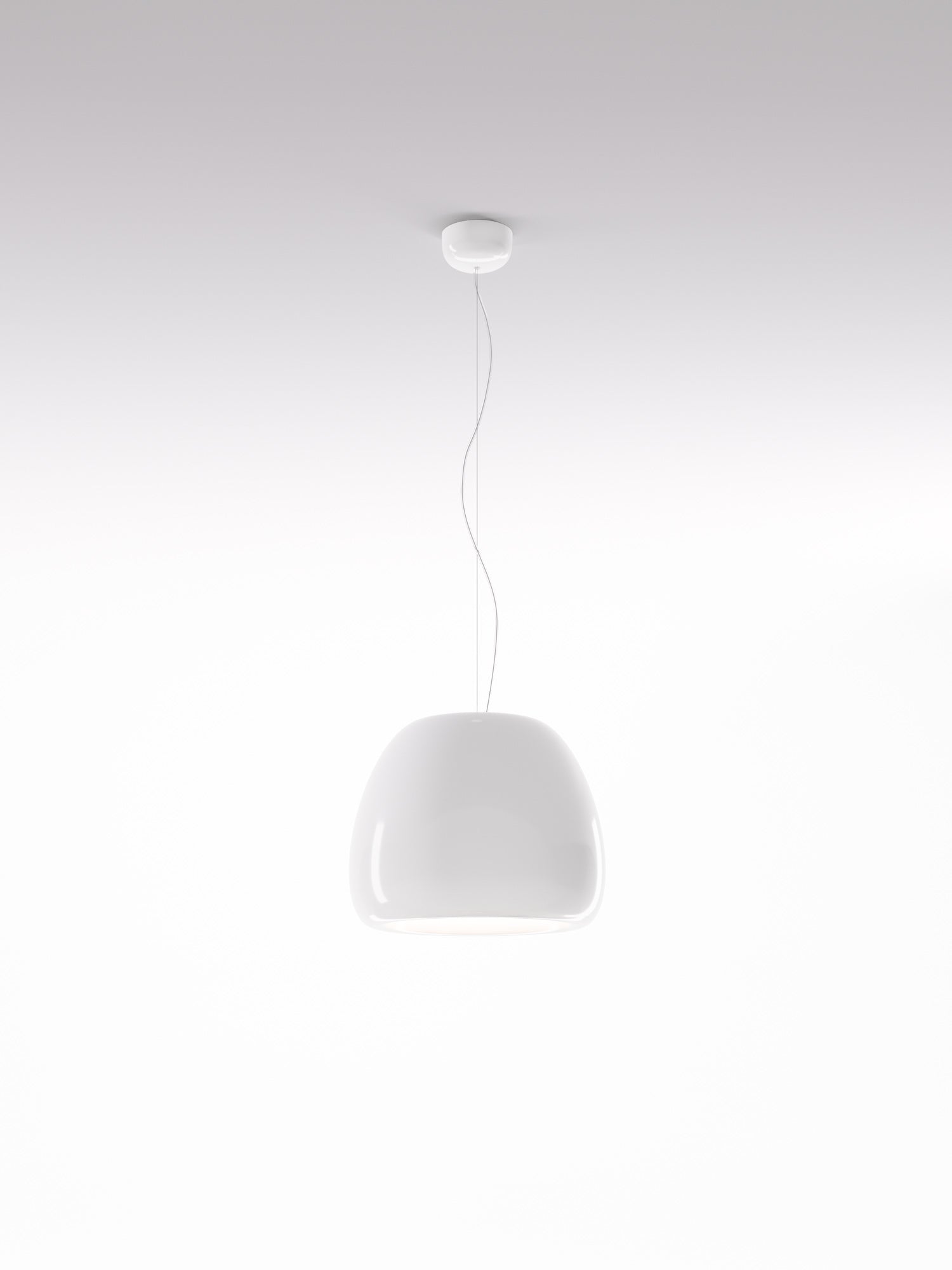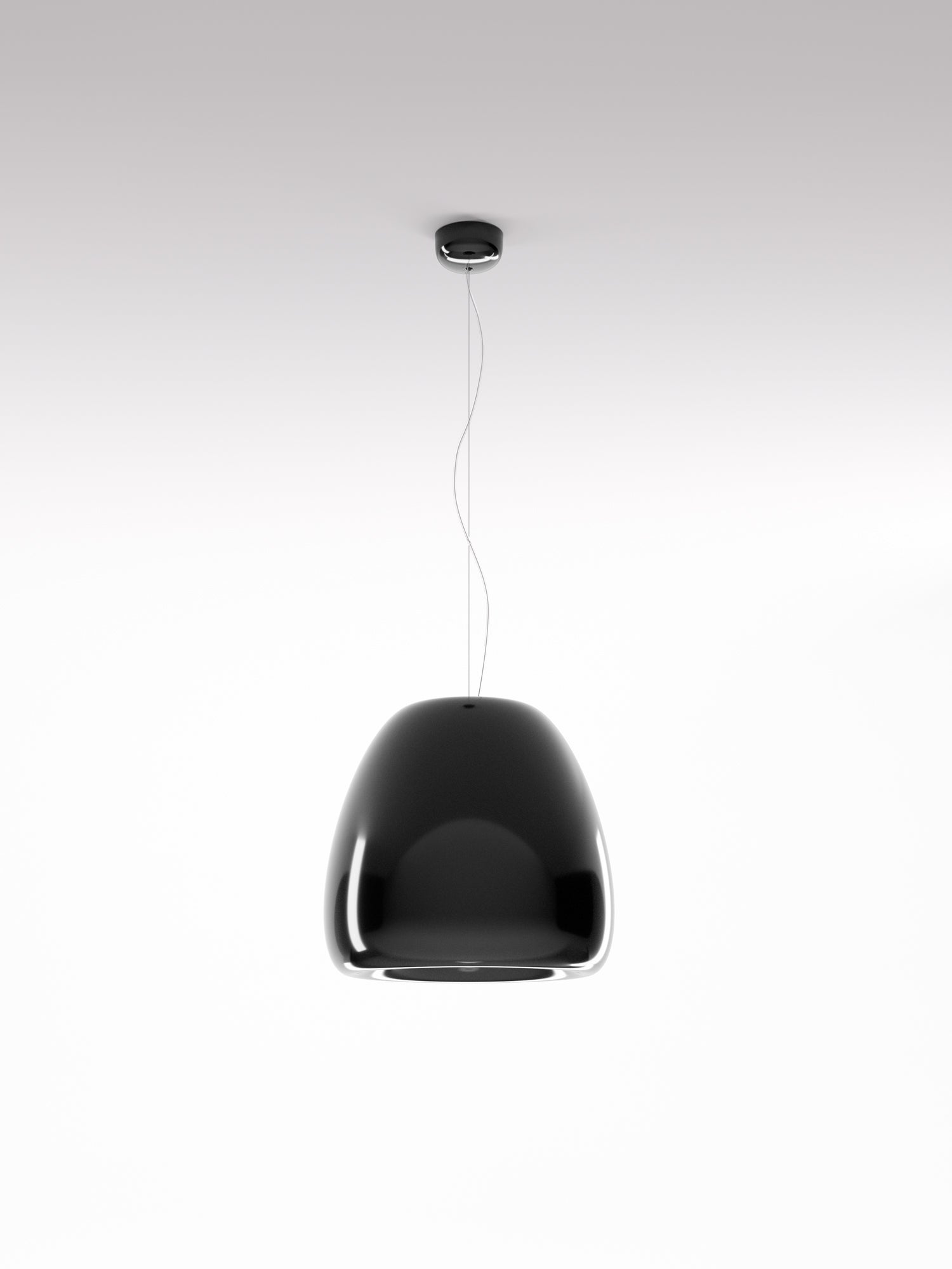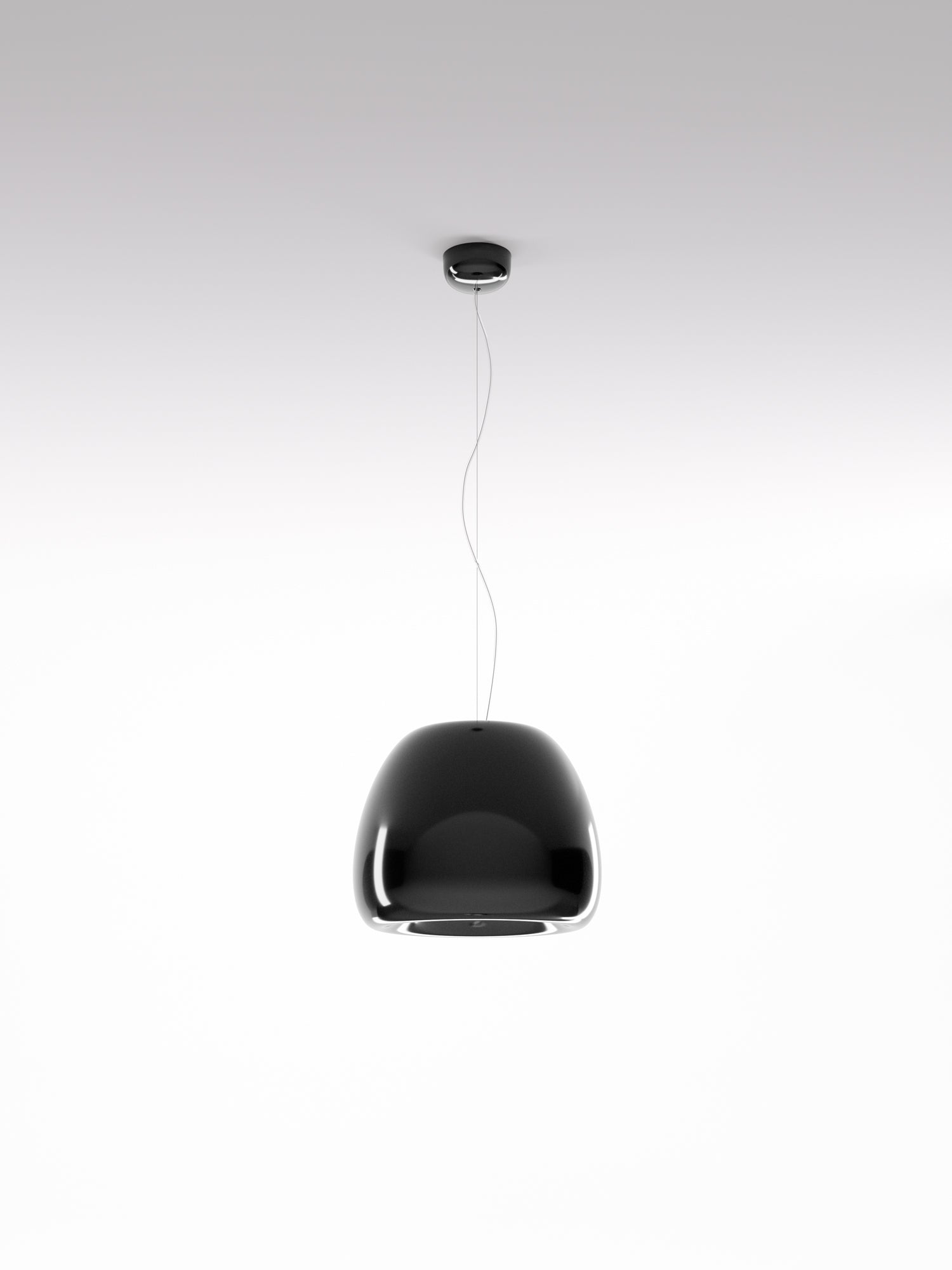 Pomi suspension lamps provide a direct, focused light. The organic shape is achieved by processing a single metal sheet, while the internal and external finishes are differentiated so as to exploit the different reflection qualities of the surfaces. Pomi features a minimalist design which is well suited to modern spaces. Available in three sizes in gloss black, white, or gold delabre finish.