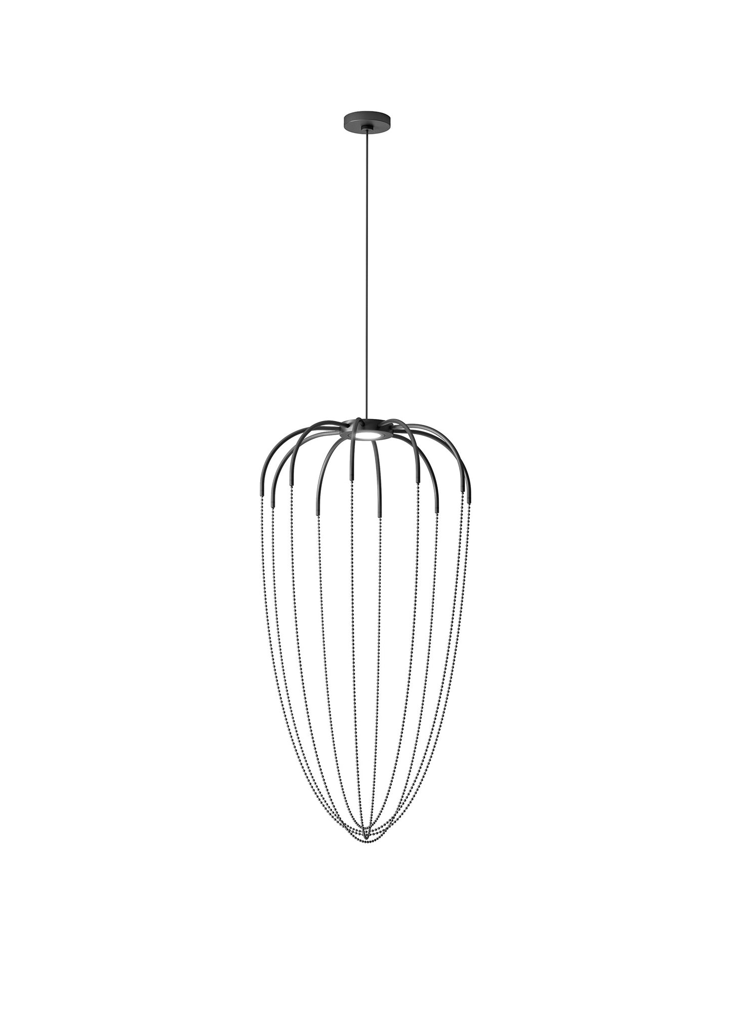 ALYSOID, the first project by Japanese designer Ryosuke Fukusada for Axo Light, is inspired by the world of geometry and architecture. A collection of aluminum handcrafted suspension lamps characterized by elegant, draped chains which define the diffuser. Available in various sizes with nickel or brass chains. Winner of a 2017 GOOD DESIGN AWARD by the Chicago Athenaeum MUSum of Architecture and Design.