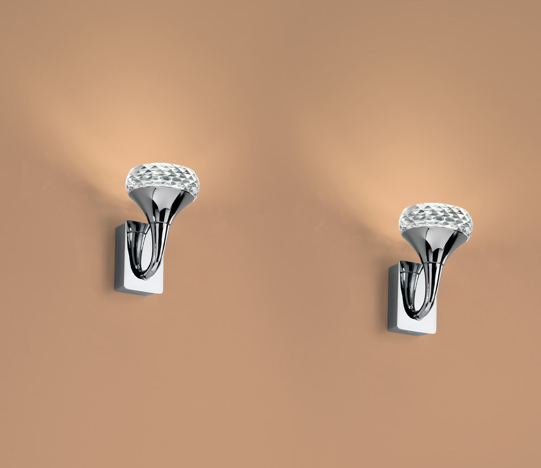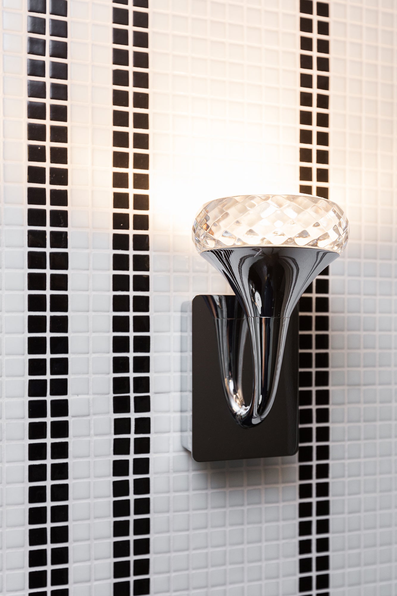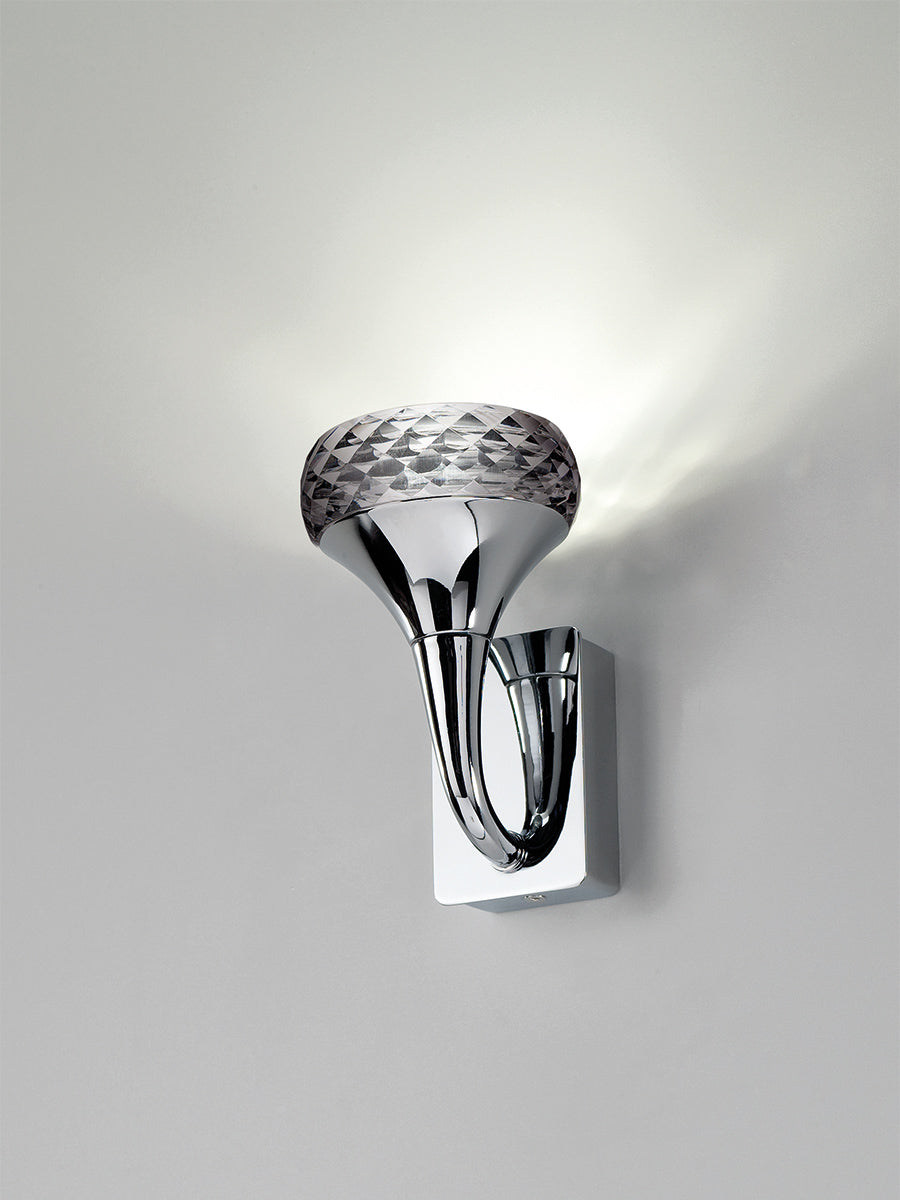 Adorn your wall with the elegant Fairy Wall Light. A collection of wall lamps with chromed metal frame and fine glass diffuser. Available in several colours. Built-in LED light source with a diffused warm emission.