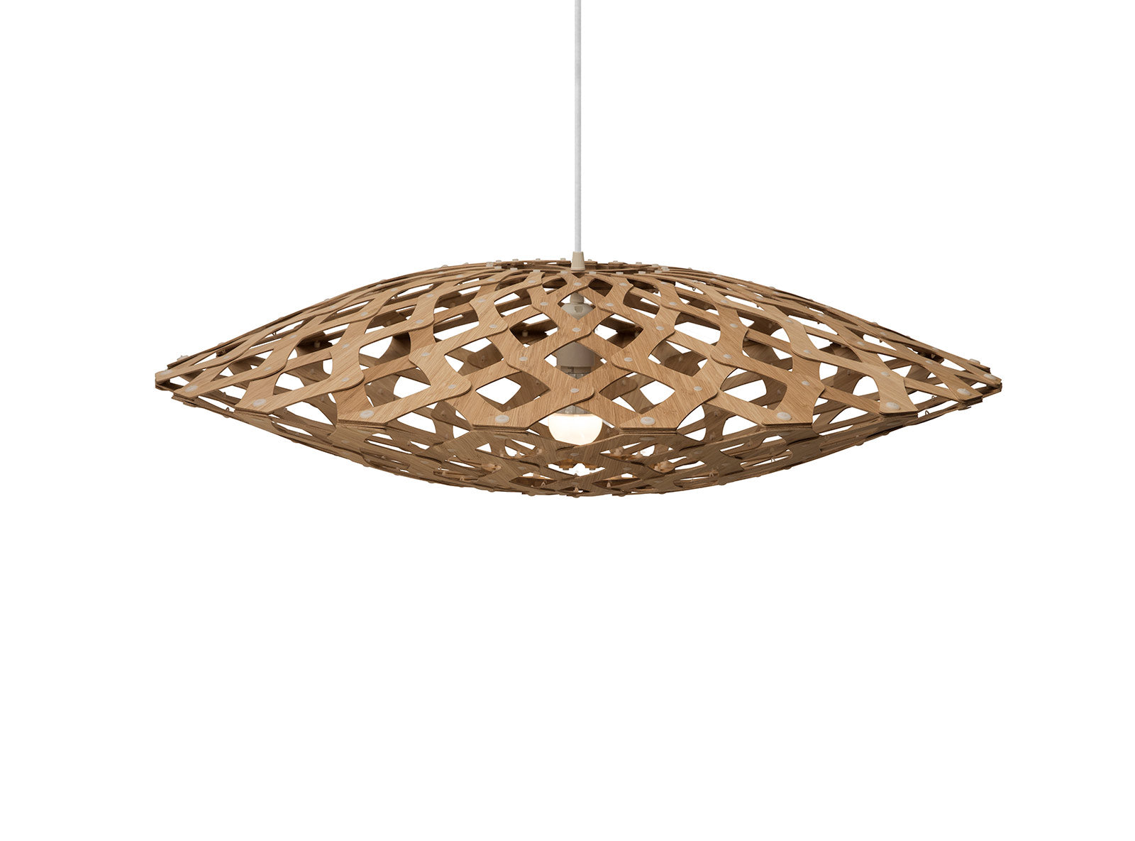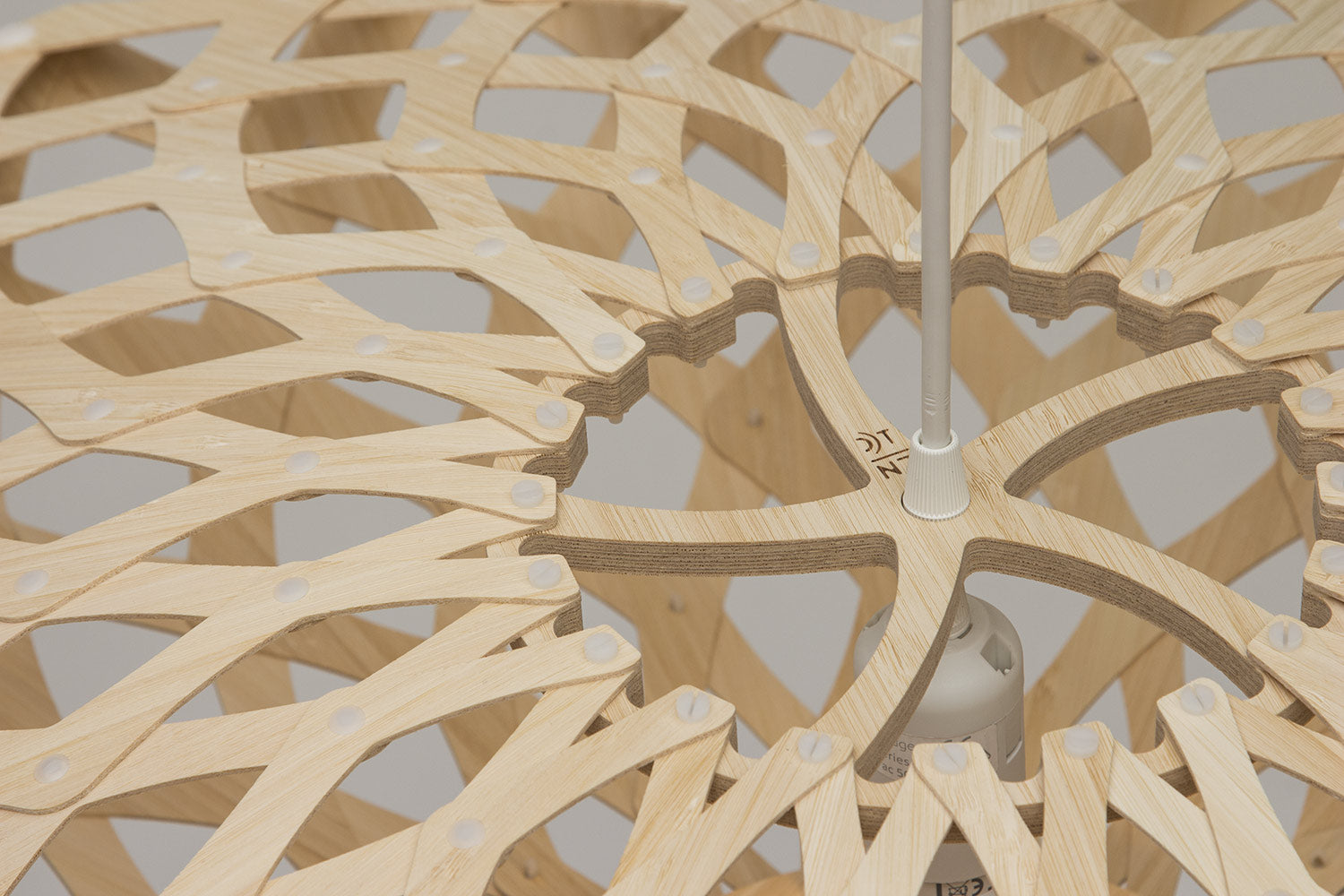 The Flax Pendant is based on the long slender leaves of the indigenous New Zealand flax plant or harakeke in Maori that has long been grown for its valuable fibre. The Flax Pendant is made of Plywood and can come in a bamboo finish or stained in a variety of colours. The Flax comes in kitset to reduce the impact of freight on the environment.