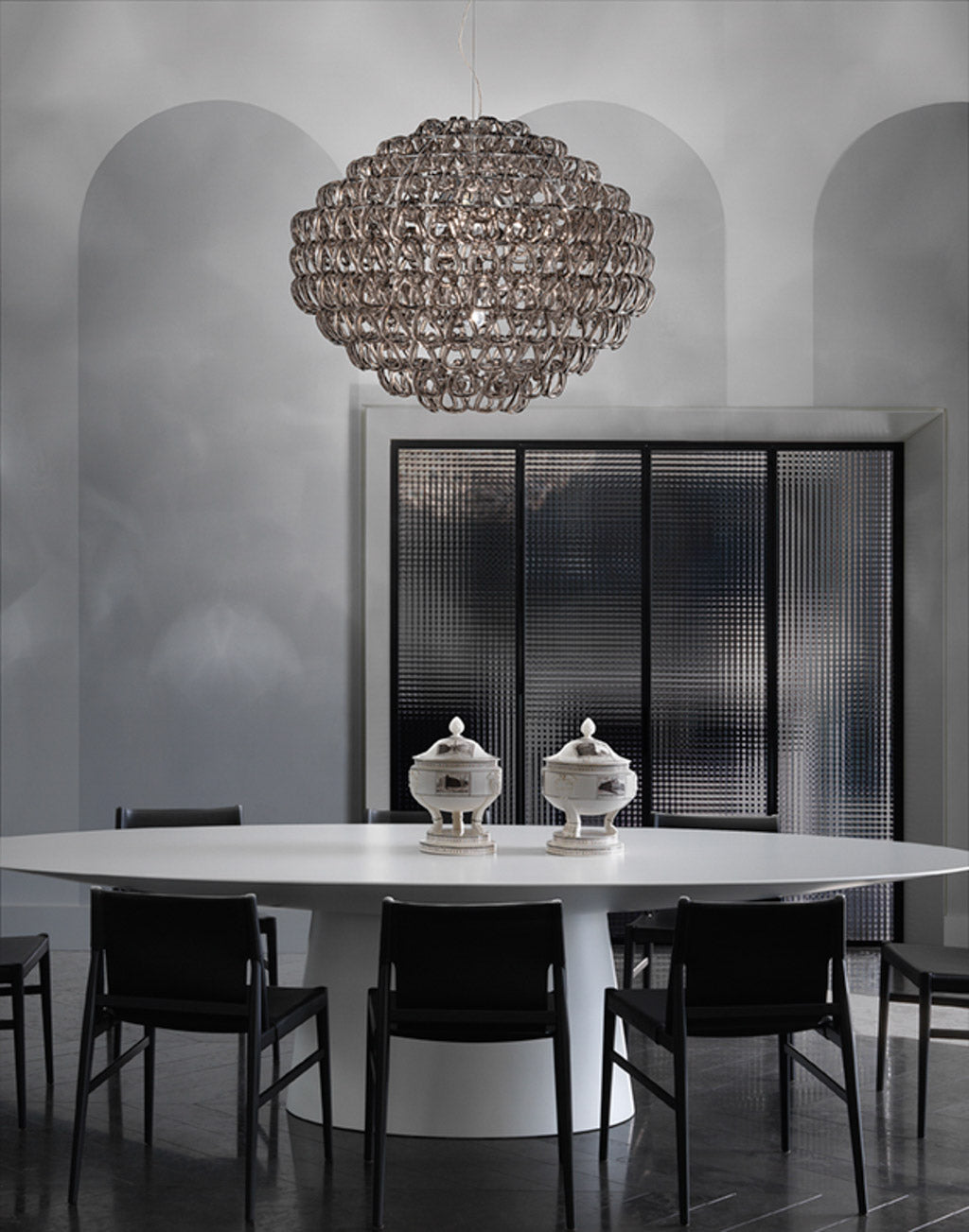 Adored around the world, the iconic Giogali Collection from Vistosi features handmade Murano crystal links that join together to create stunning and dramatic combinations. Designed by Angelo Mangiarotti for Vistosi in 1967, Giogali has since become synonymous with Italian design, featuring in homes and commercial spaces of all sizes across the globe. The Giogali Pendant Light can come with a bronze or chrome frame and a variety of different link colour options and sizes.