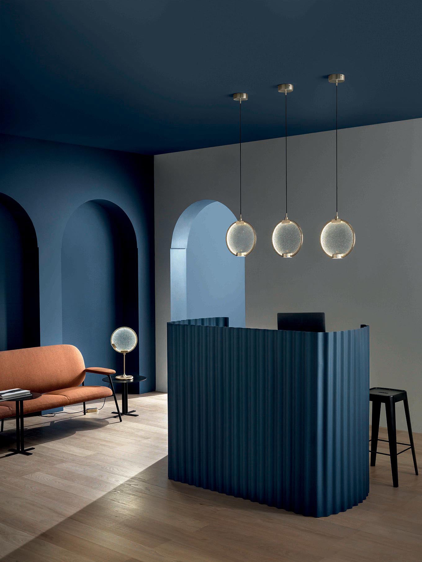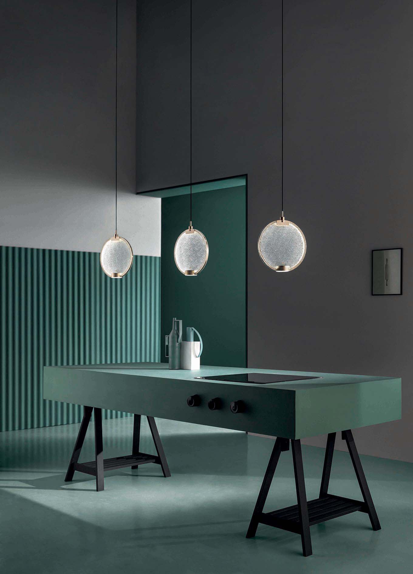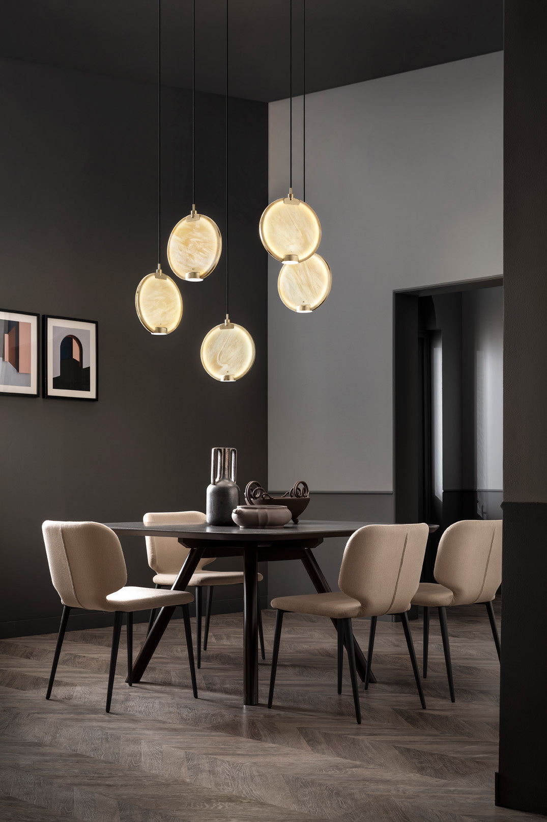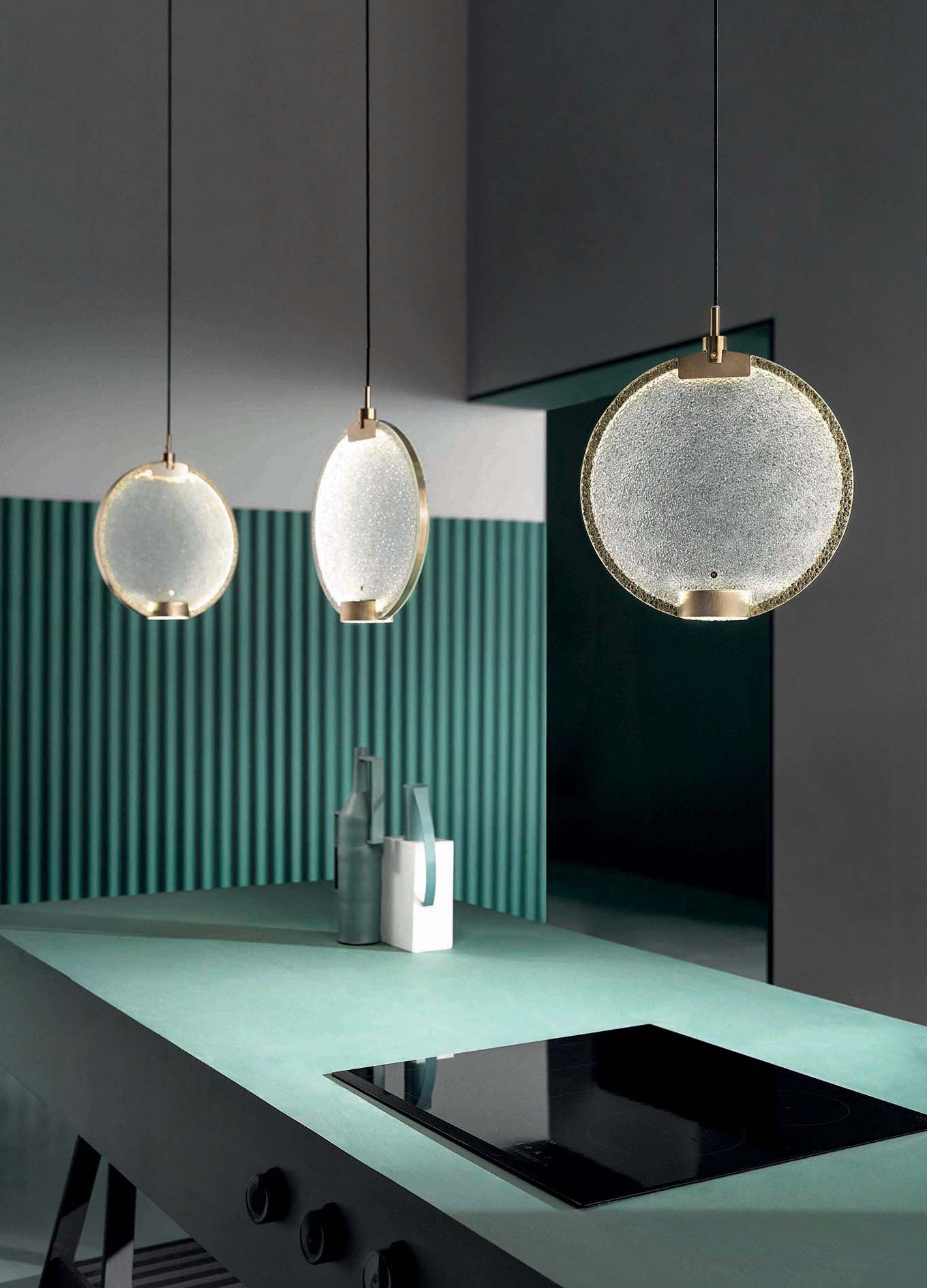Horo is inspired by ancient depictions of the sun, including the sun god Ra, which gives the collection an enduring and ethereal quality. Available with clear or coloured prismatic glass and featuring brushed brass metal details. Designed by Pierre Gonalons and made in Italy.