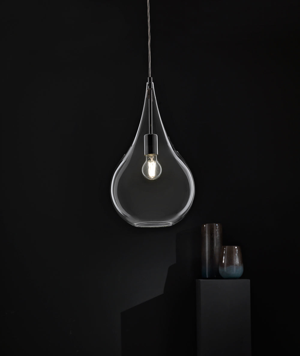 The Lacrima Pendant by Cangini & Tucci is named after the Italian word for tear, from where it gets its shape. Made from hand blown glass, this suspension light is ideal for single or cluster formations, particularly when a variety of options are combined in a cluster. Lacrima is available with a smooth or striped finish for added texture, as well as a variety of colour options, and small, regular, and large sizes.