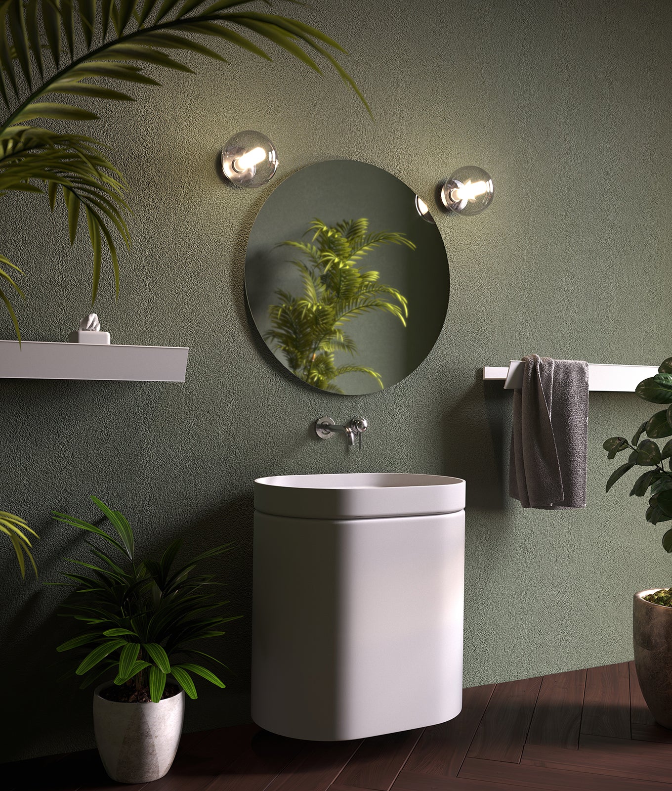 Mirea is an elegantly designed wall lamp for modern interiors. Composed of a transparent glass sphere enclosing a frosted cylinder from which uniform light is diffused. The blown glass diffuser and galvanized brass base are available in a variety of finish combinations for versatile application. Designed by Massimiliano Tucci in collaboration with Cristian Li Voi.