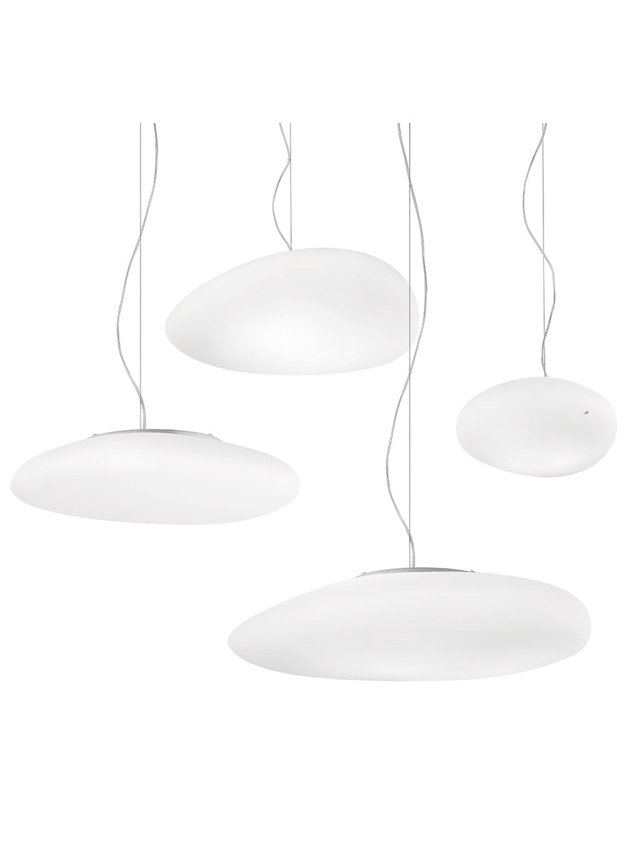 The Neochic collection is inspired by the natural effect that water and wind make on stone. The pendants unique and simple form of smooth gradients compliments a contemporary setting. Made of mouth blown glass with matt white finish. Available in a variety of sizes. Design by Chiaromonte & Marin for Vistosi.