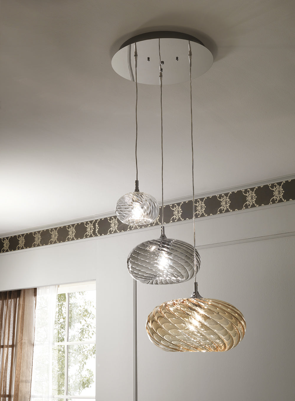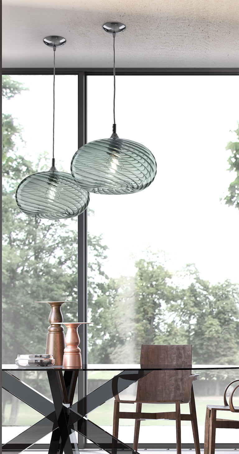 PARIGI STRIPED XXL OVAL 38W x 25H. AMBER PENDANT. 1 X E27 70W MAX (RXXL/1213.1L)