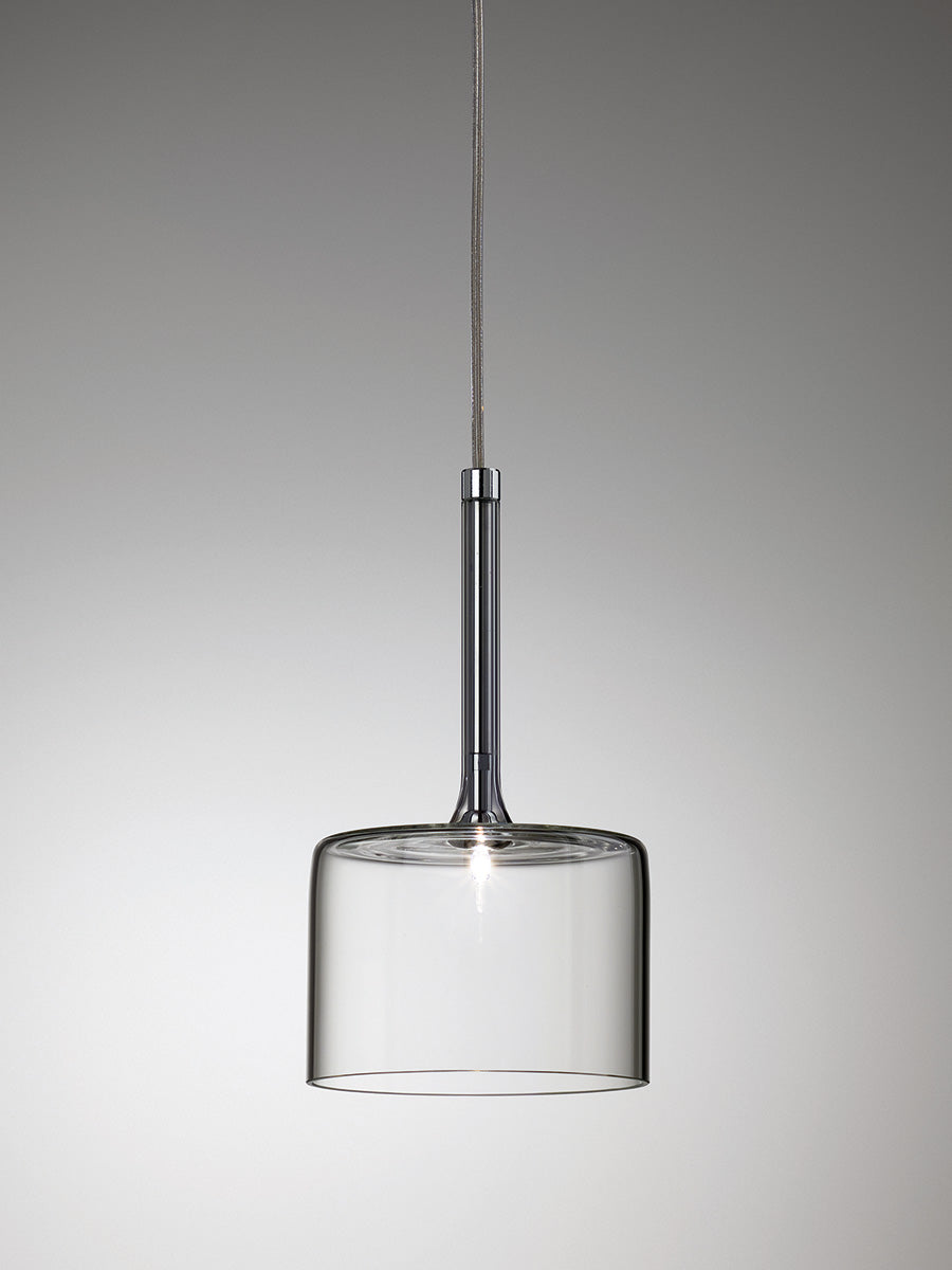 The Spillray collection of pendant lamps is an elegant shape play on upturned goblets. The diffusers are made of glass with chrome-plated metal canopy, gracefully illuminating any area. Available in several sizes, configurations and finish options suitable for a variety of applications. Single pendant also available with surface mounted or recessed canopy.