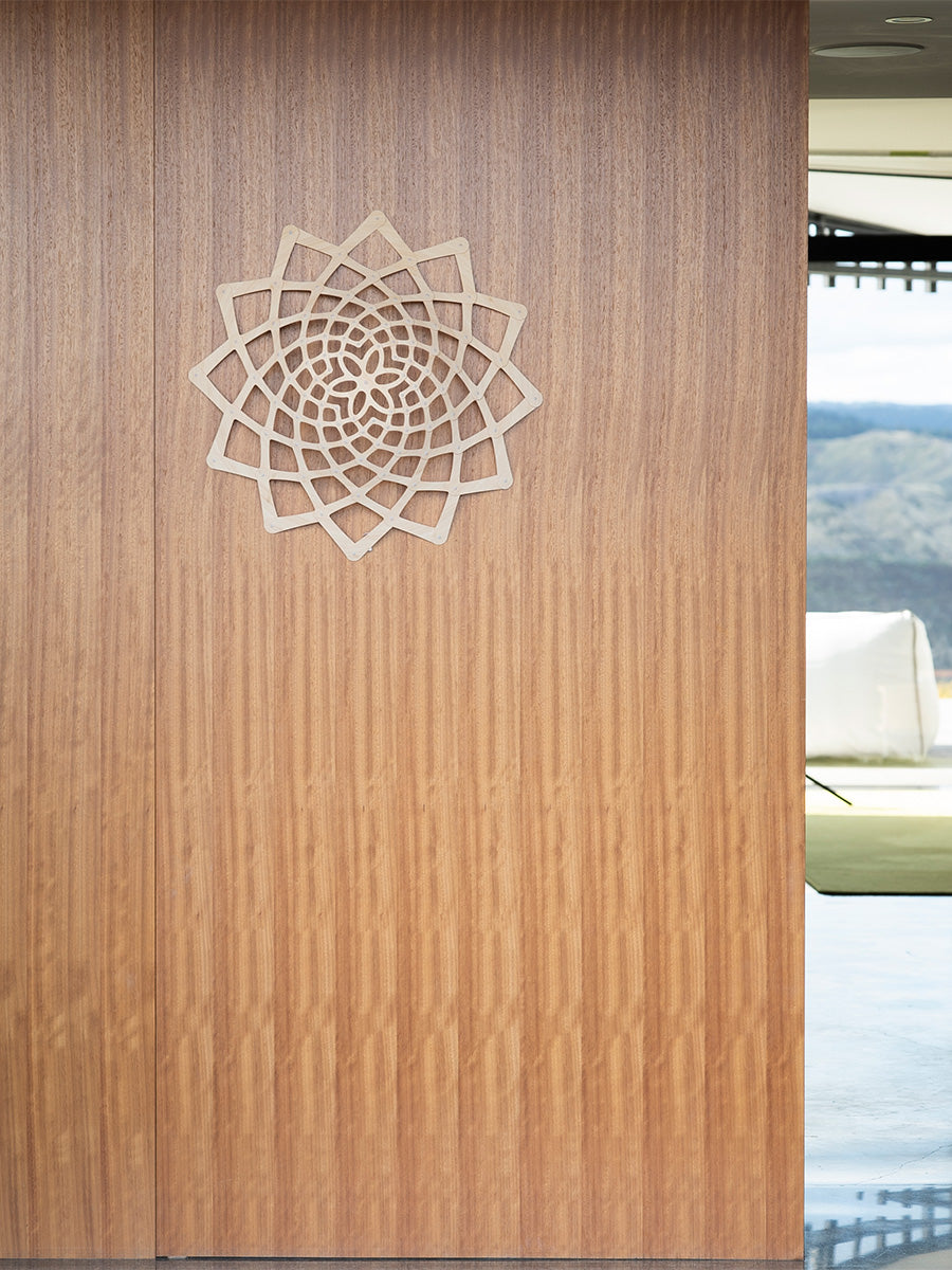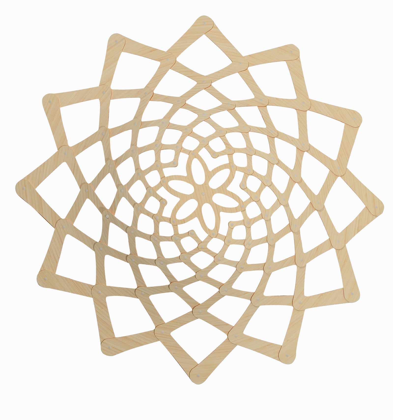 Sunflower is a wall light shade that can be mounted over an existing wall sconce. It is a sculptural geometric form based on David's inspection and love of the patterns found in nature. The first kitset wall shade from David Trubridge, Sunflower is a simple and easy way to freshen up existing interiors as well as a sculptural lighting installation. Made from environmentally sustainable bamboo.