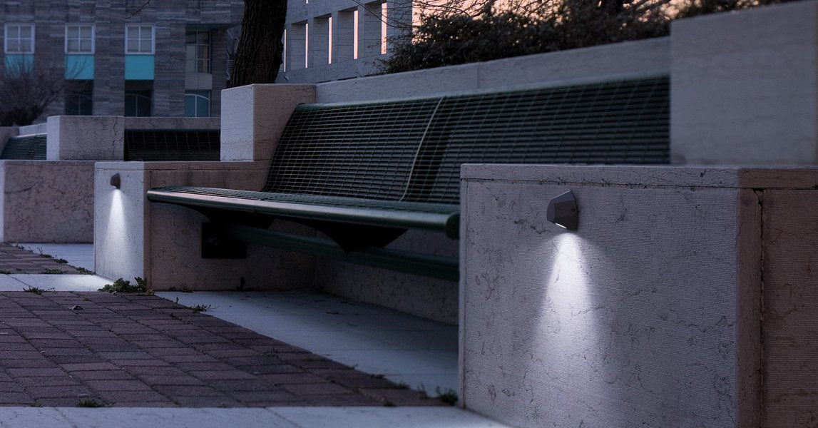Asperitas contemporary wall light in grey finish. In-built 3W LED source, PHASE dimmable. IP68 rating for indoor or outdoor aplications. Made in Italy.