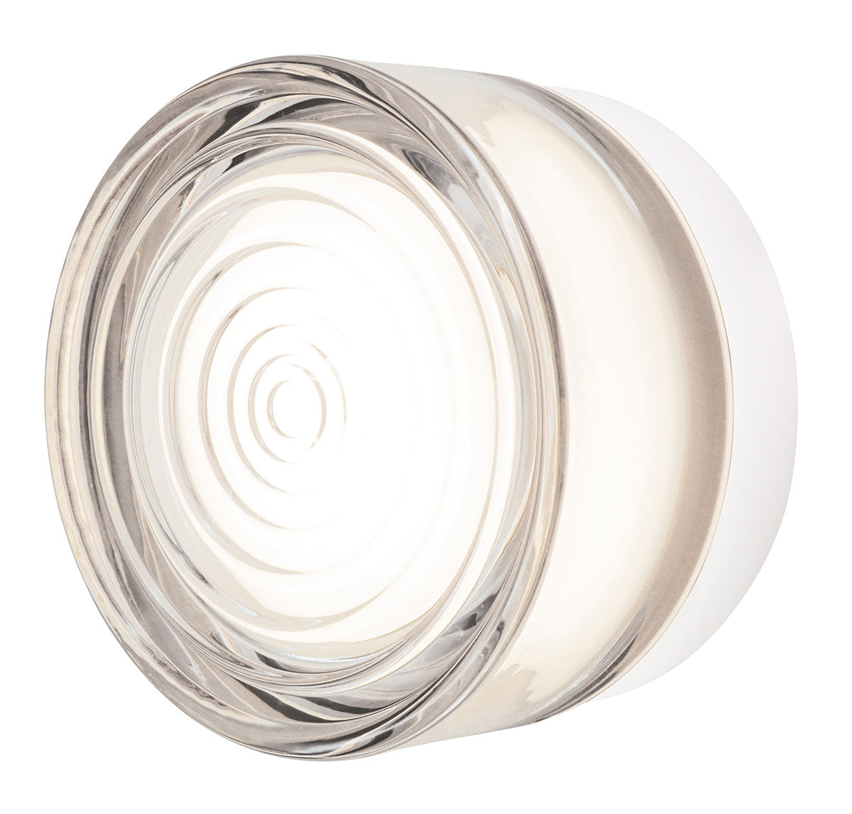 The Arcolight Loop is a 5W wall or ceiling light offering three switch-controlled CCT modes - 2700K (250lm), 3000K (270lm), and 4000K (280lm) - suited to a wide range of residential and commercial applications. Supplied with a 500mA low flicker trailing edge dimmable driver and a CRI of >90. The toughened glass diffuser carries an IK05 impact rating and is rated IP65, making Loop suitable for bathrooms and exterior areas. Standard in white finish, with an optional decorative ring accessory (sold separately) available in black, brushed brass, chrome, dark bronze, or matt nickel to complement a variety of interior schemes. The Loop is part of the Arcolight collection, curated by Studio Italia.
