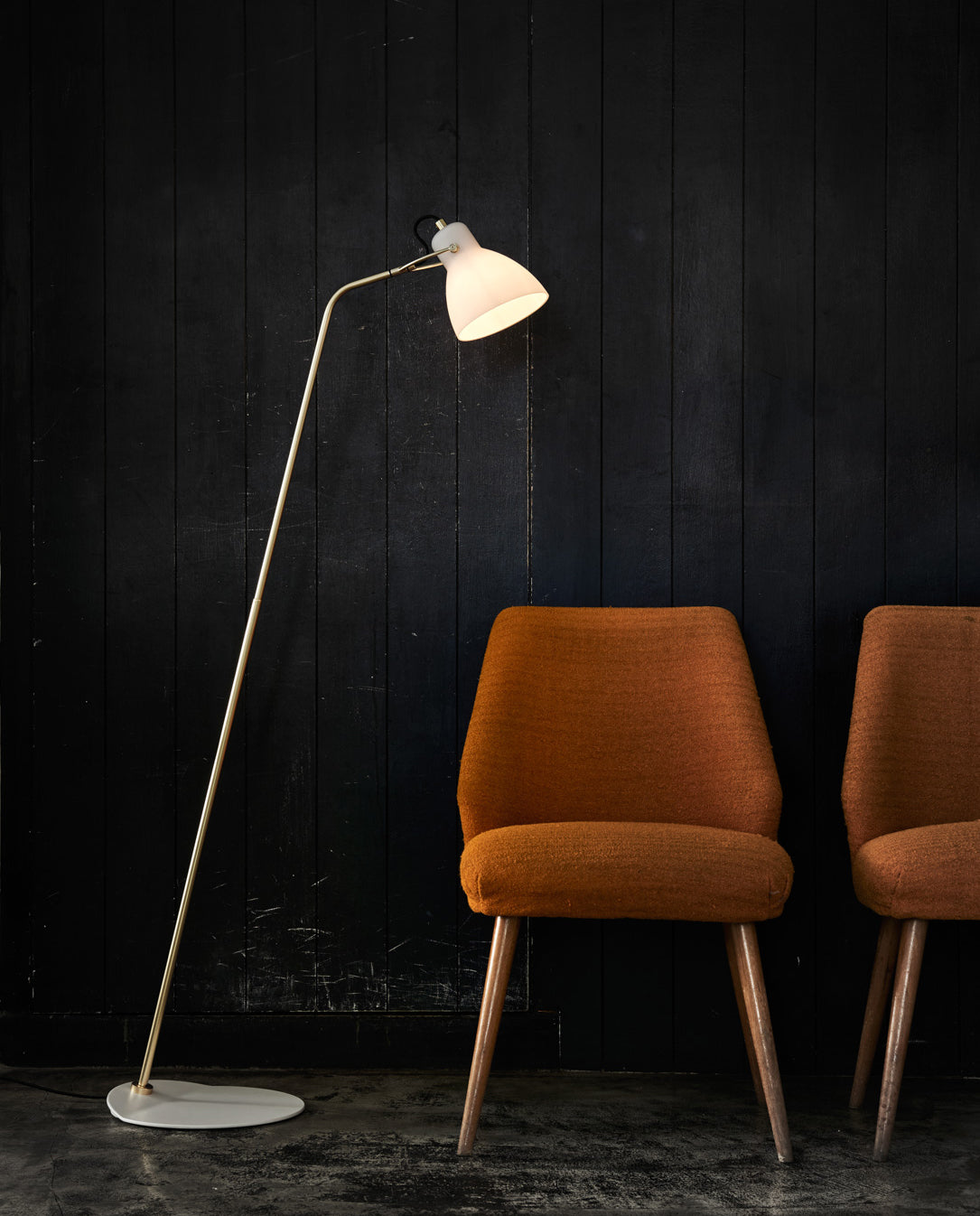 Laito is inspired by vintage lamp design. With a sturdy aluminium body and opal shade, the Laito boasts an updated classic look without compromising function. The specially designed fishbone structure enhances balance and allows rotation in the lampshade. Available in black body and base with white shade or brass body and white base with white shade.