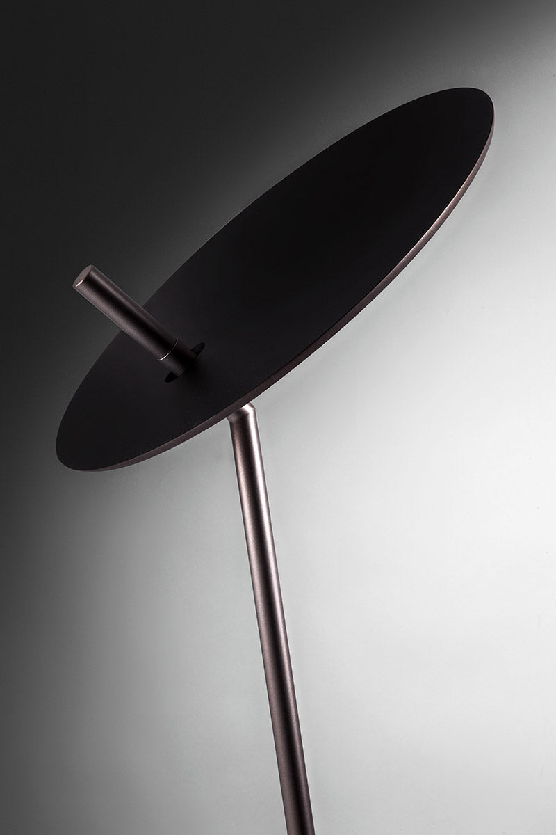 The Lua Floor Lamp features an adjustable light source that is only 6mm thick. An aluminium disc with a smooth profile produces indirect lighting which enhances the Lua's deisgn. Equipped with a high efficiency LED, the Lua floor lamp provides a unique accent to a contemporary space. Available in a variety of finish options. Made in Italy.