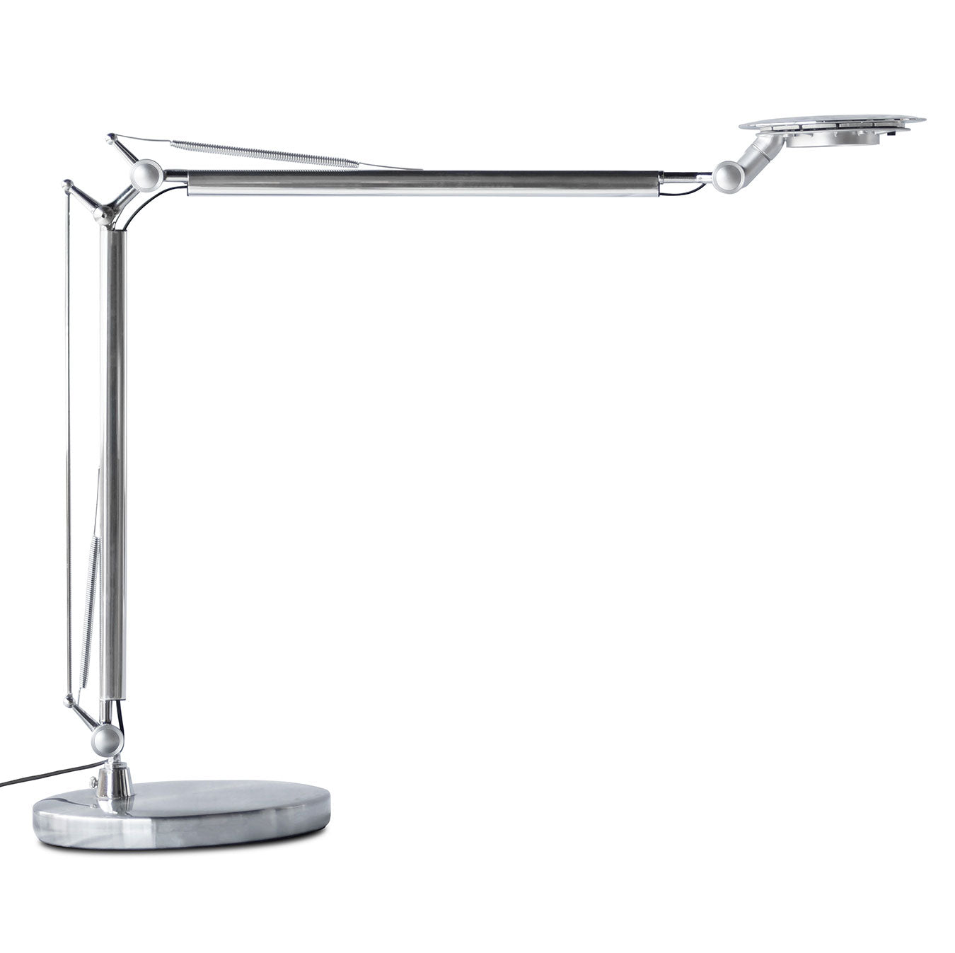 Adjustable LED table lamp with rotatable head. The arm mechanisms allow the Stellar to be adjusted with ease while maintaining stability. Equipped with a 4000k 6W LED, the Stellar provides ample illumination ideal for work and study areas. Available in chrome finish.