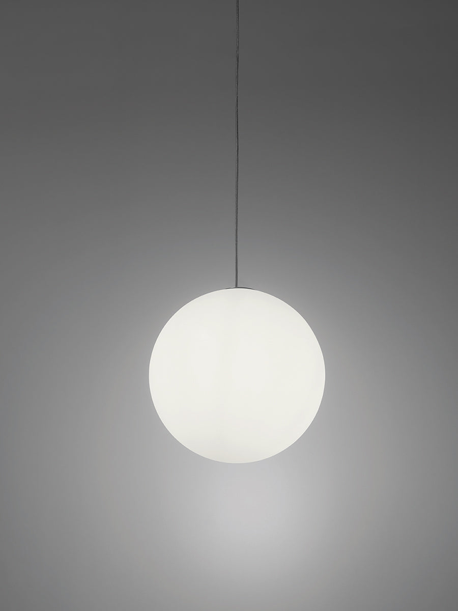 The simplicity of a luminous globe can create an elegant atmosphere in indoor and outdoor settings. The essential design of the Globo family of hanging lamps are perfectly suited to minimalist contemporary projects. Globo lamps can create a unique luminous effect, particularly when various sizes are installed in close proximity. Available in 60cm and 80cm size (more sizes available on request). White finish with 3m of transparent cable.