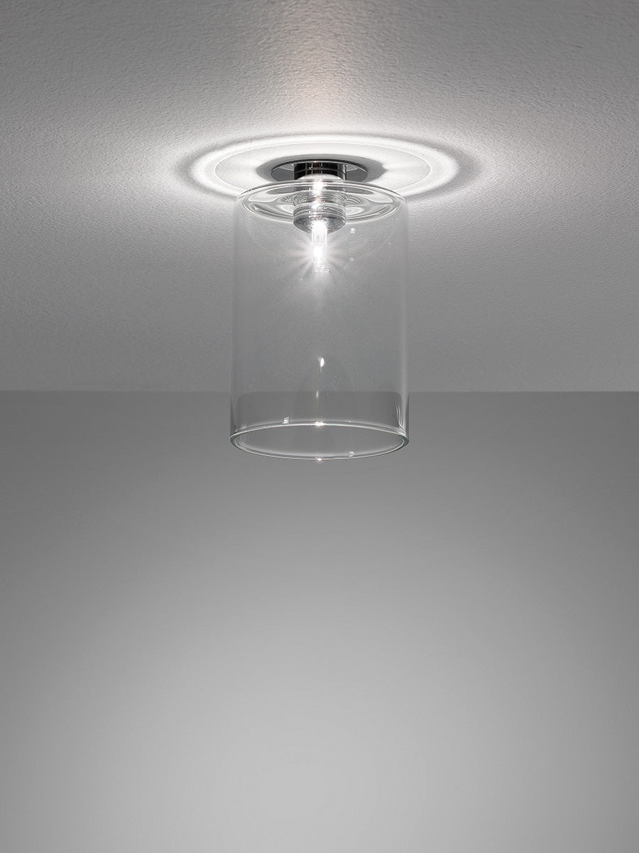 The Spillray collection of ceiling lamps is an elegant shape play on upturned goblets. The diffusers are made of glass with chrome-plated metal frame, gracefully illuminating any area. Available in several sizes and finish options.