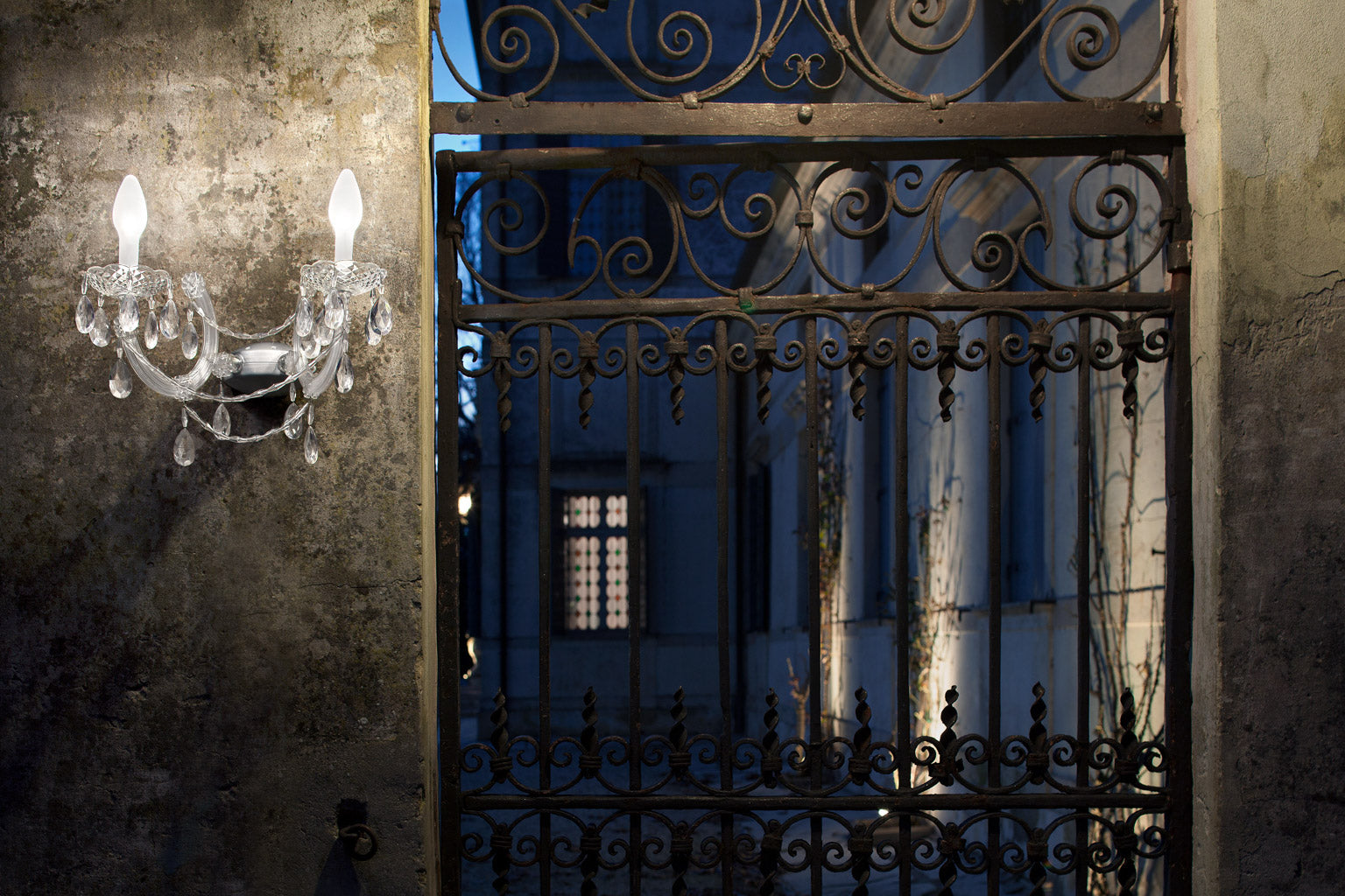 Drylight is a patented lighting collection from Masiero that reproduces the iconic Venetian chandelier for outdoor use. Drylight is the result of years of research carried out by Masiero's R&D department, with each item in the collection featuring an IP66 protection index. They are protected against water, dust, and corrosion; resistant to stress, UV and extreme temperatures (ranging from -30 degrees Celsius to +50 degrees Celsius); and incorporate lightness and modularity for simple installation. The Drylight wall light is offered in a 'premium' version for use undercover, or an 'extreme' version with added wind resistance for use all year round. The exterior wall light is available in white or a changeable RGB-W LED version with smartphone app or optional remote control. Exclusive to Masiero and made in Italy.