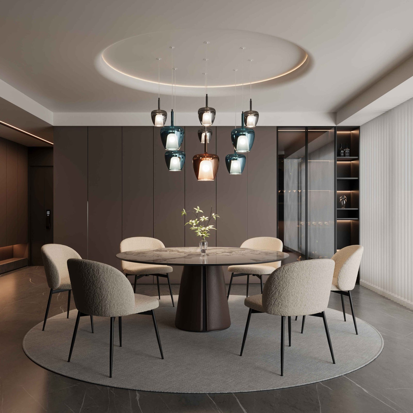 Inspired by the elegance of wine and the warmth of shared moments, the Clos Pendant Lamp by Cangini & Tucci is a celebration of Italian glassmaking and convivial design. Its hand-blown glass shade, crafted with the finesse of a wine glass, casts a soft, embracing glow through refined transparent hues. With its internal diffuser and shimmering reflections, Clos brings a sense of intimacy and tradition to any space-an invitation to pause, connect, and enjoy the beauty of light. Available in three sizes in a variety of finish combinations.
