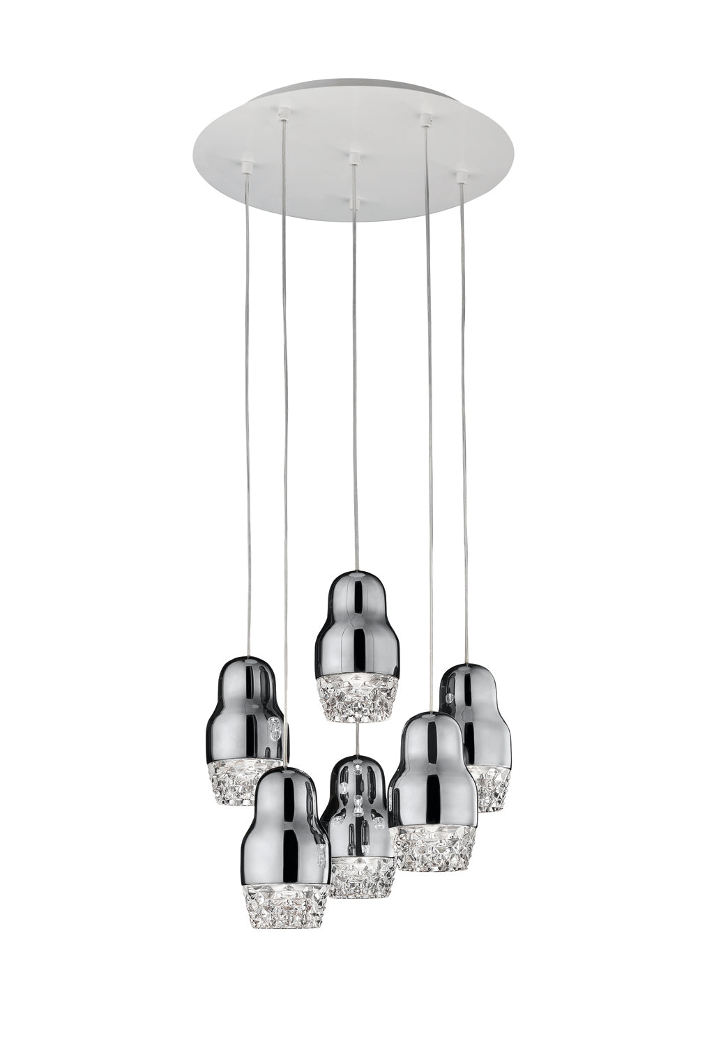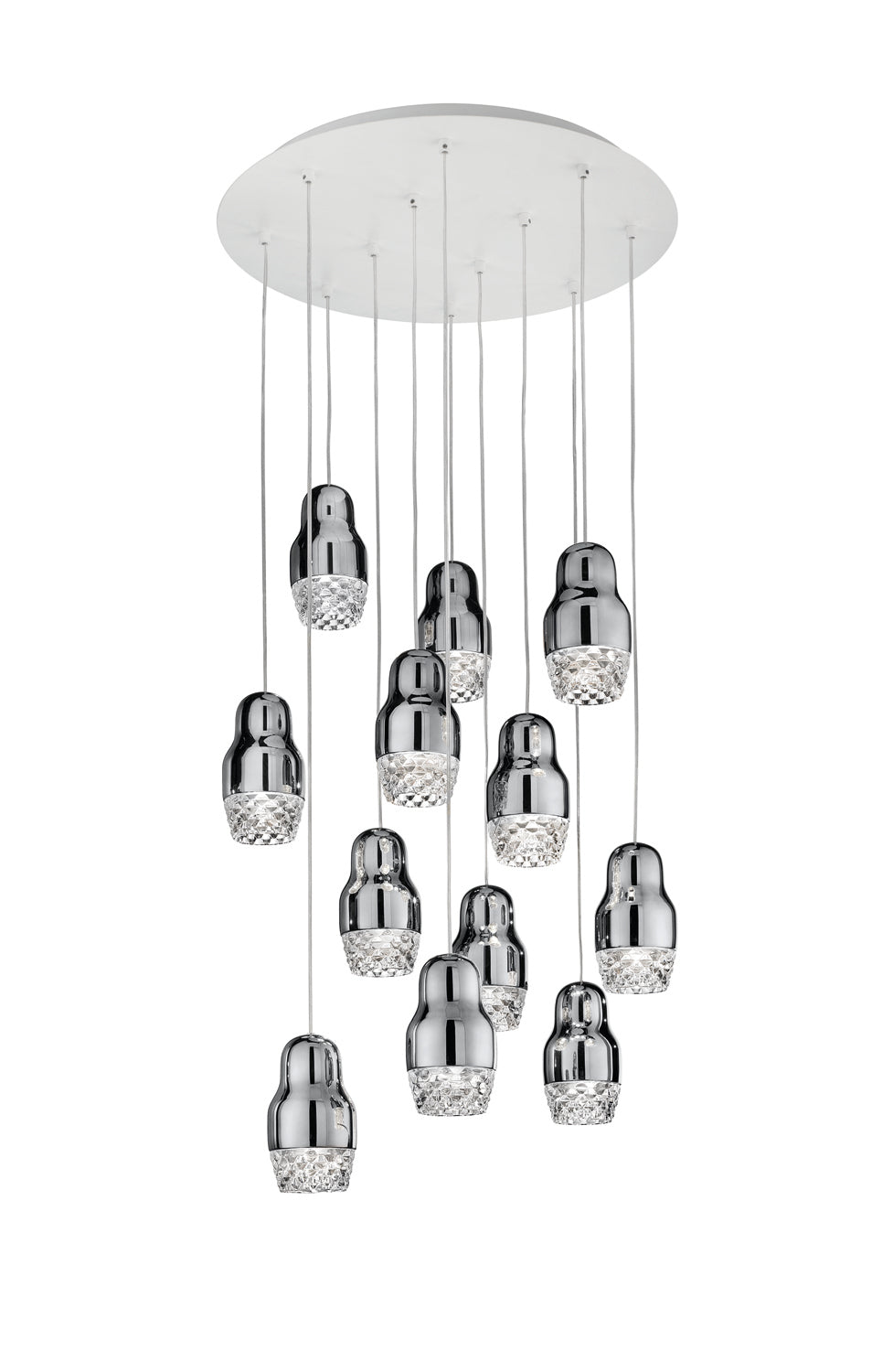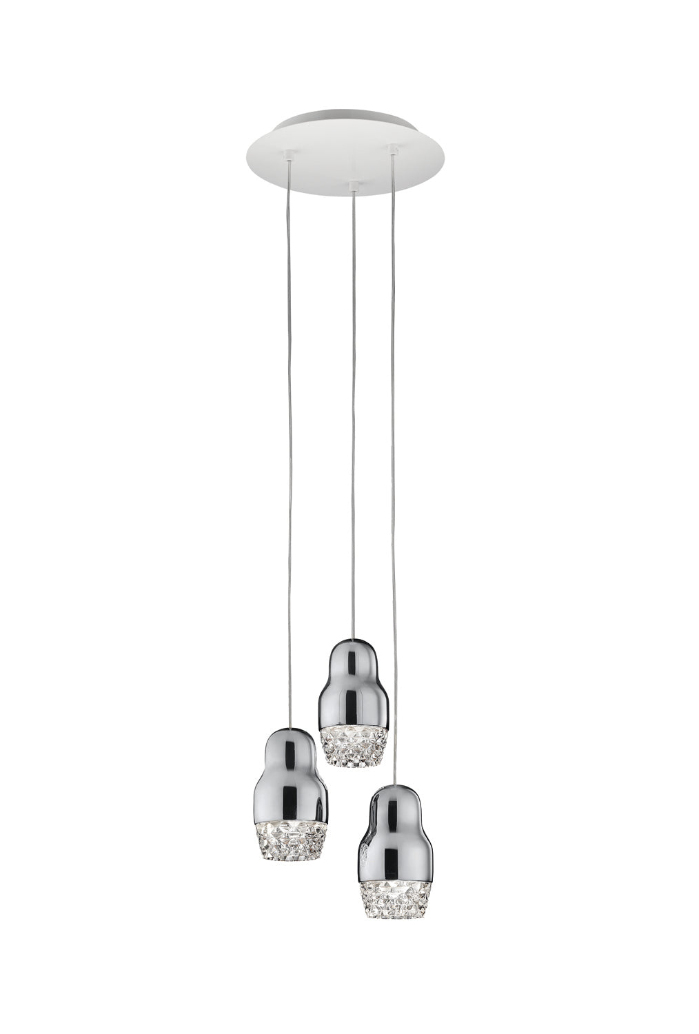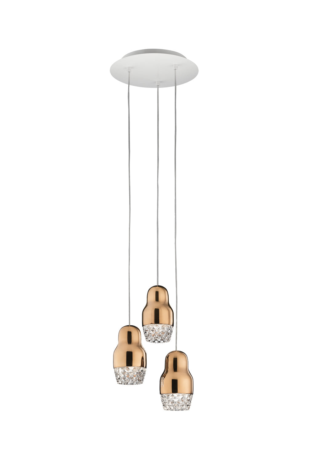 Contemporary and traditional design is combined in the Fedora Suspension Light. Inspired by the Russian matryoshka doll, the transparent geometric detailed glass diffuser is complemented by polished aluminium, exuding elegance within a space. Each pendant light takes 1 x GU10 LED, making it an excellent choice for hospitality and retail applications as well as domestic. Fedora is available in a variety of formations in bronze, chrome or rose gold finish. Design by Dima Loginoff.