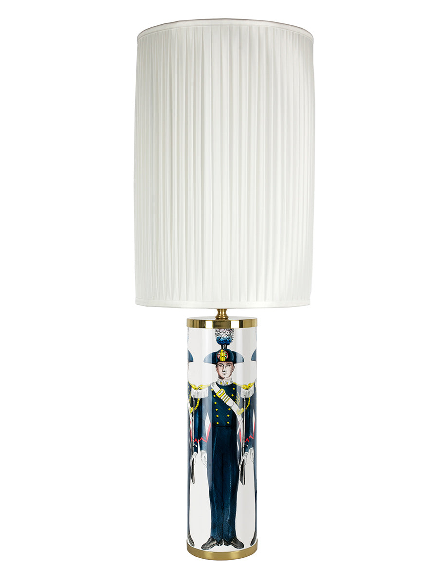 Silk lamp shade by Fornasetti designed for use with their collection of table and floor lamps. The cylinder shaped shade is made of premium silk and features an elegant pleated design. Available in white.