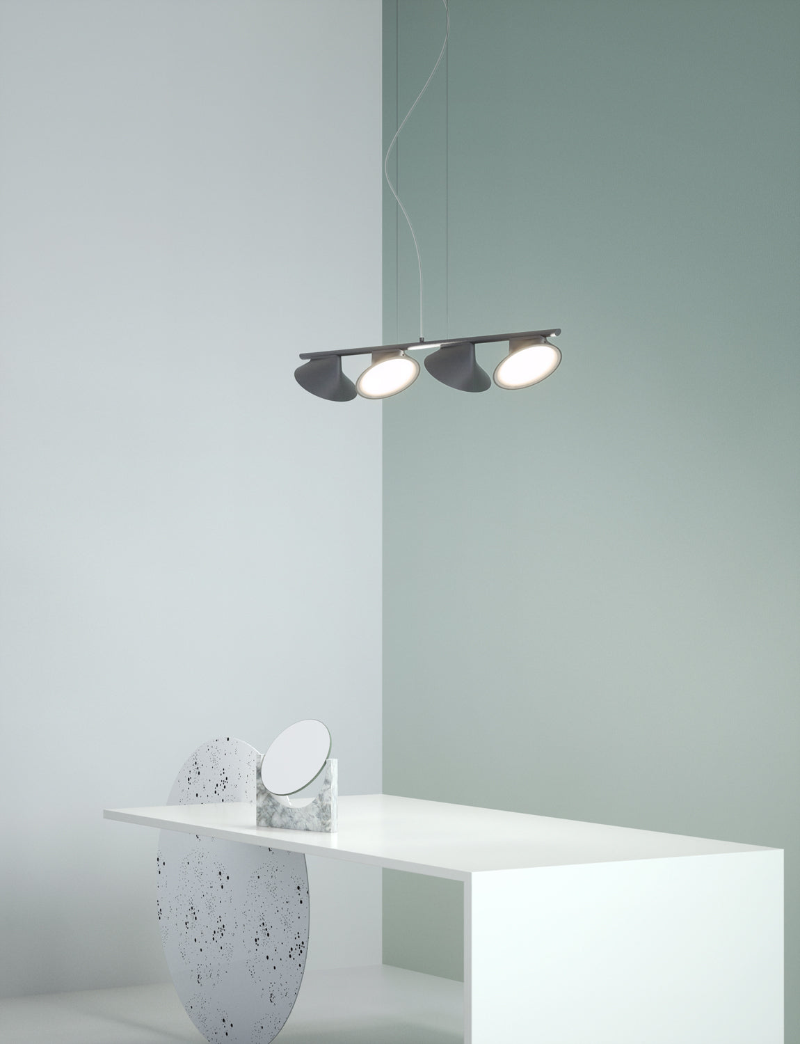 A creation of Austrian designer Rainer Mutsch, Orchid is a lighting collection inspired by nature. The structure of the aluminium blossom-shaped diffuser prevents overheating. Thanks to its versatility and minimalist aesthetic, the Orchid pendant performs well both in residential settings and in large-scale contract projects. Available in white, sand or anthracite grey finish in horizontal or vertical version.