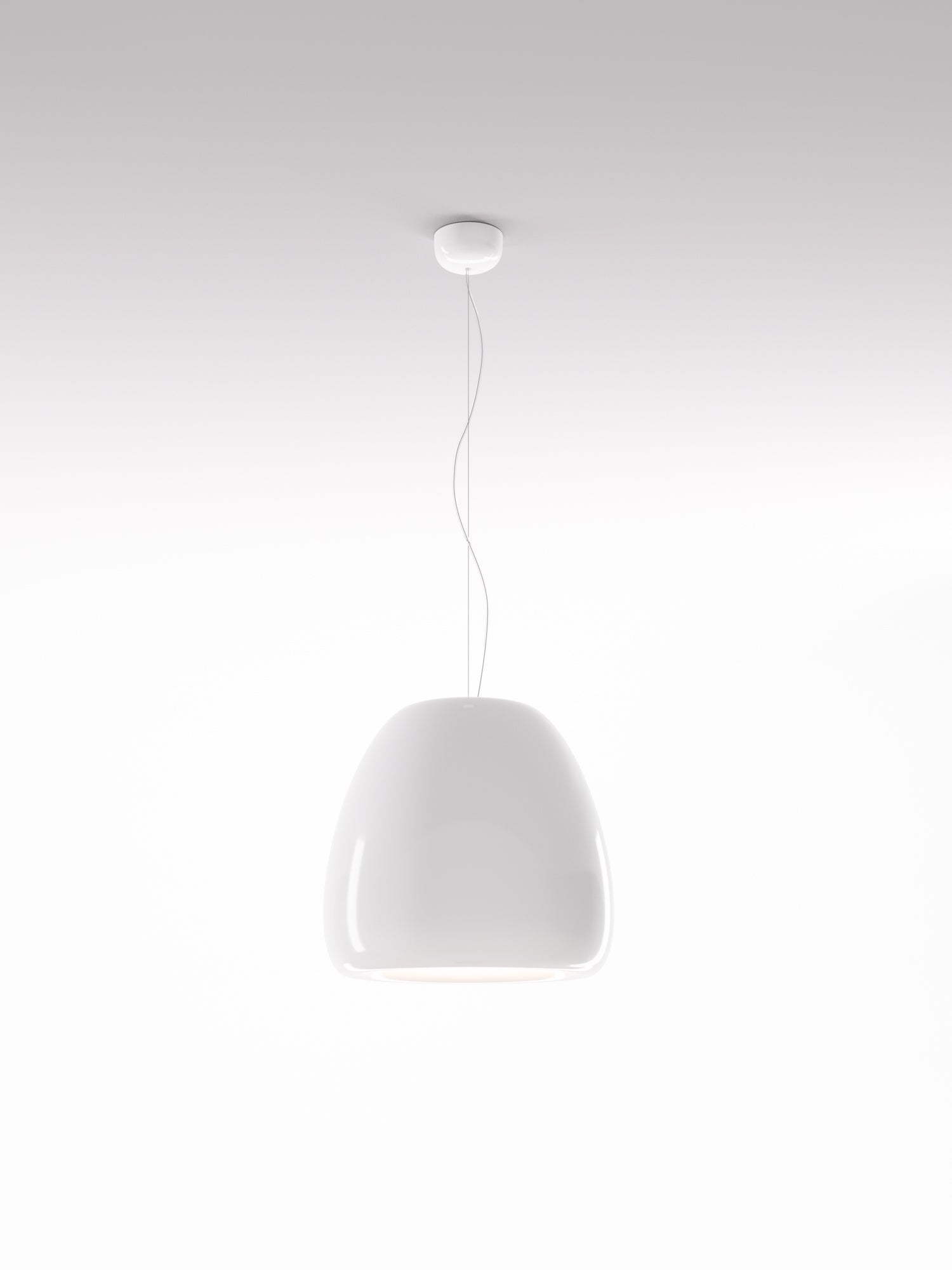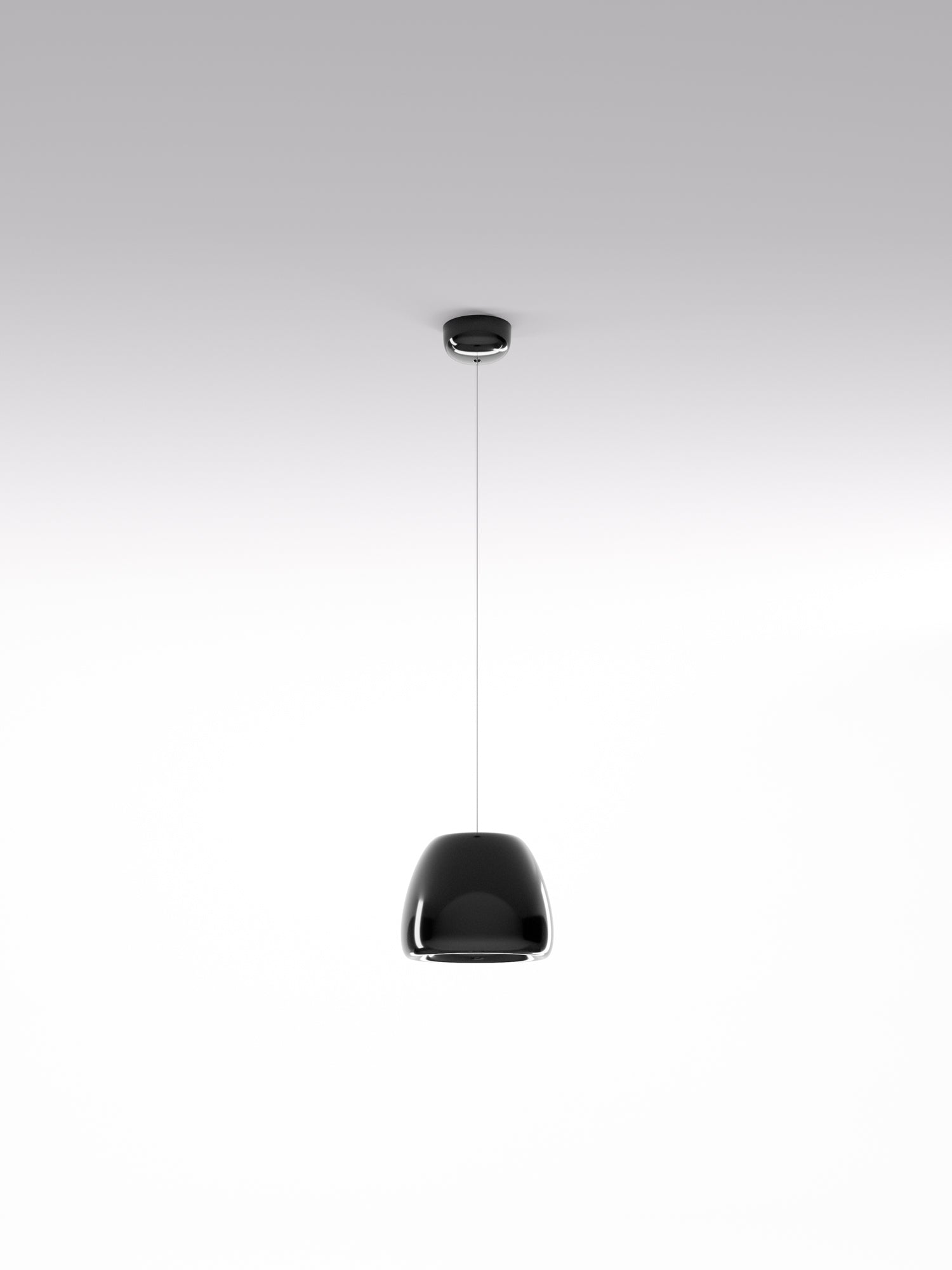 Pomi suspension lamps provide a direct, focused light. The organic shape is achieved by processing a single metal sheet, while the internal and external finishes are differentiated so as to exploit the different reflection qualities of the surfaces. Pomi features a minimalist design which is well suited to modern spaces. Available in three sizes in gloss black, white, or gold delabre finish.