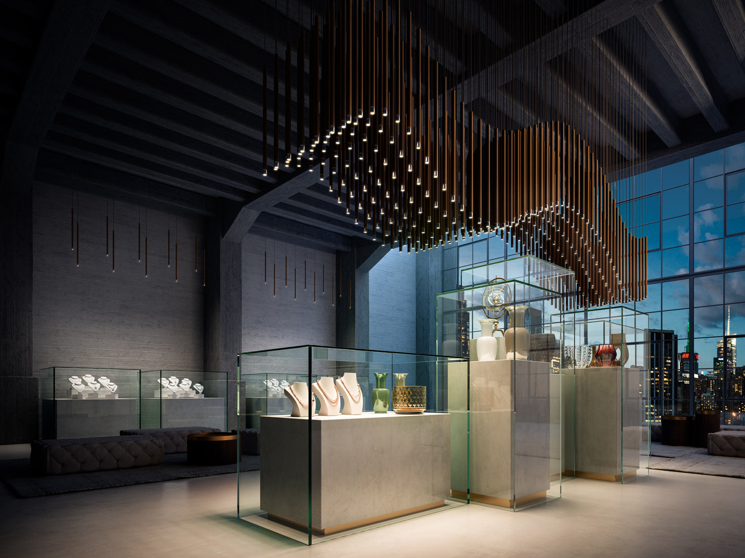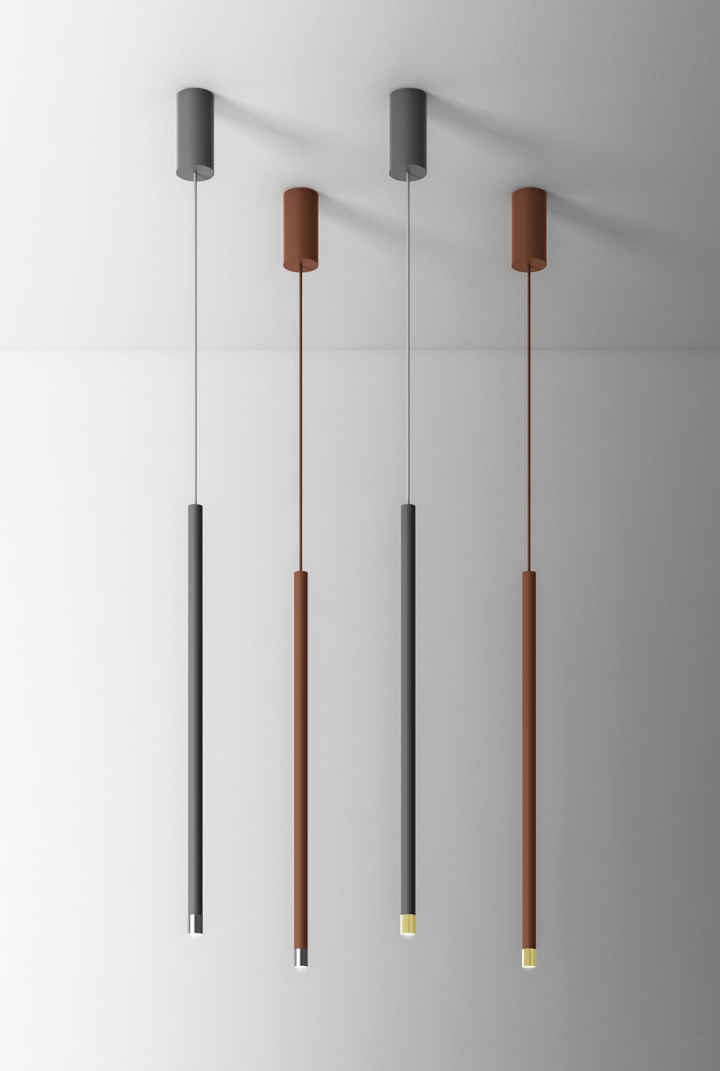 Virtus is a collection of slim cylindrical suspended lamps in aluminium. Equipped with a built-in dimmable LED light source and available in a variety of finish options. With its thin, sleek profile and energy-efficient glow, the Virtus pendant is ideal for creating an ambient tone in contemporary residential and commercial settings.