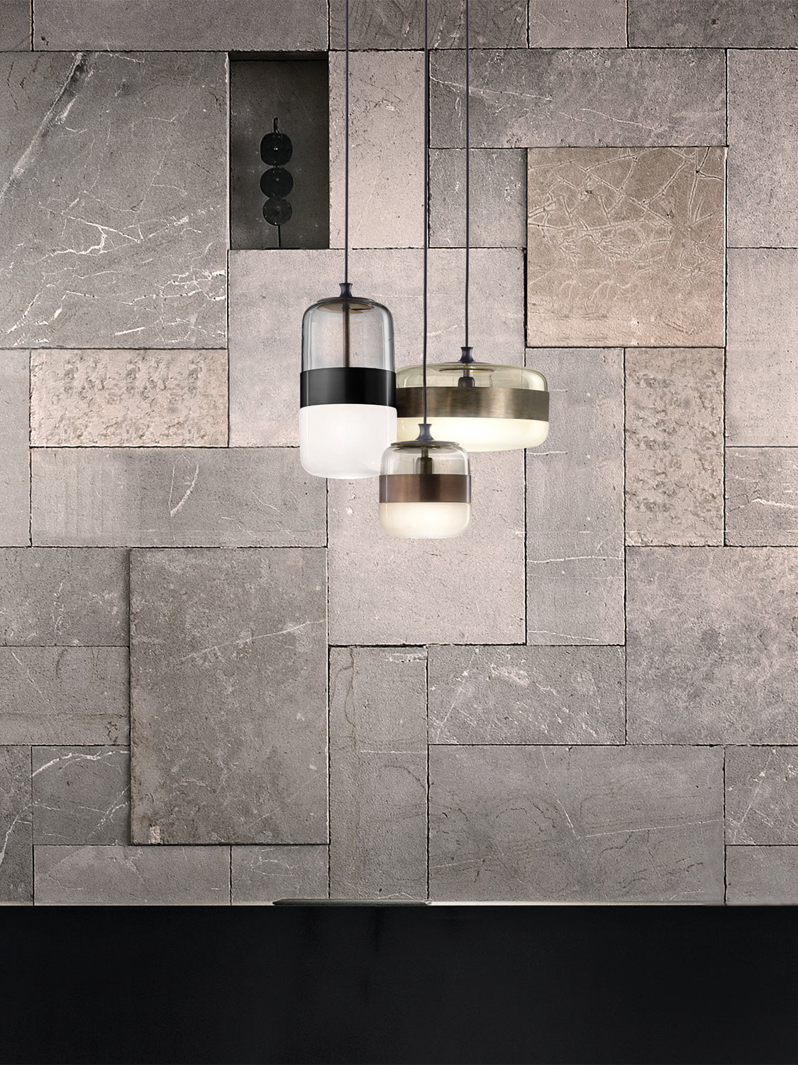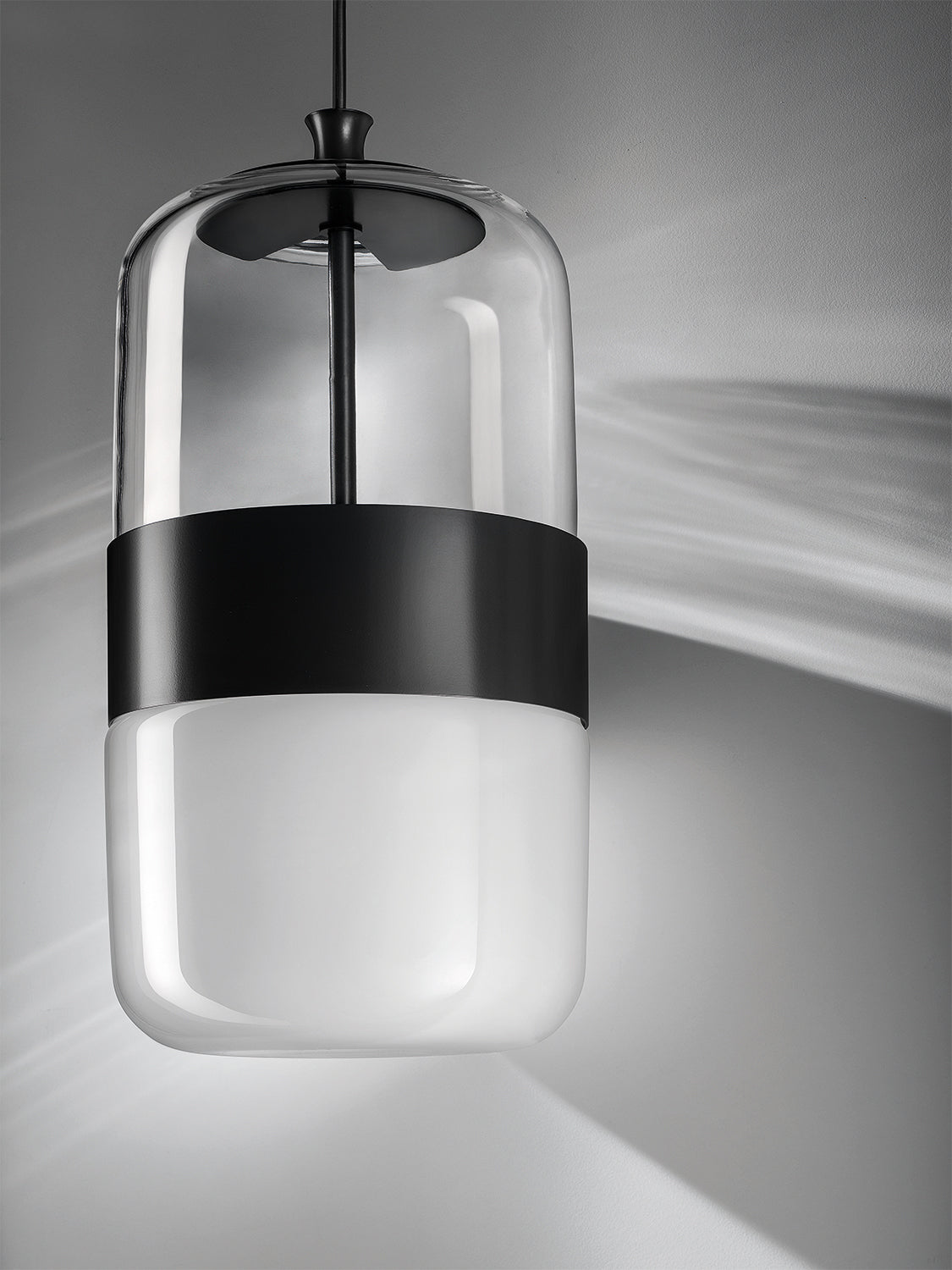 Awarded the prestigious Archiproducts "Best in Lighting Category" in 2016, FUTURA is a light fitting of the future. Murano glass is blown in a single piece with the handcrafting process allowing a transparent upper diffuser and transparent or opaque bottom diffuser. The aesthetic of the fitting incorporates a simple shape with neutral colours divided by a metal ring which encircles the center of the fitting. Takes 1 x E27 70W (Max) globe. Futura is available in three sizes, with three upper glass and three ring finish options allowing for a wide variety of combinations.