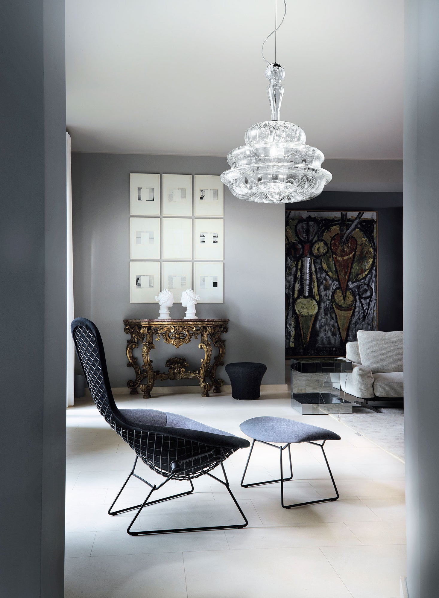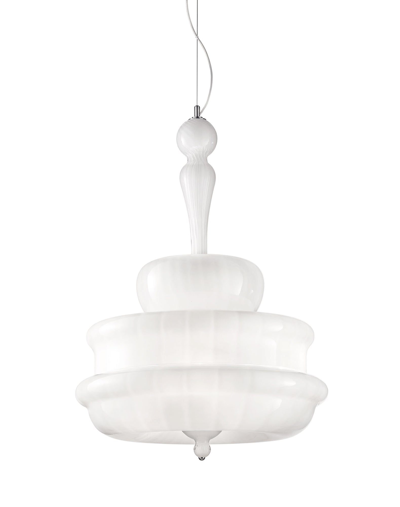 Novecento Pendant takes the classic shape of the Murano chandelier and reconstructs it in a 360 degree glass outline, retaining characteristics of the traditional Murano design with an updated aesthetic. Suited to both classic and contemporary atmospheres in residential or commercial settings. Available in three sizes with crystal or white finish.
