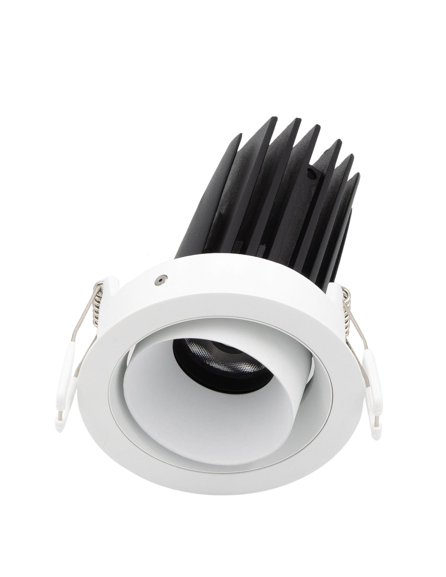 The Arcolight Darc 80 Short is a compact adjustable recessed downlight with a short fascia profile allowing 25-degree tilt and 355-degree rotation. Equipped with an 11W LED delivering up to 899 lumens with exceptional 97 colour rendering index and SDCM less than 2 for outstanding colour consistency. Available in 15-degree 24-degree 36-degree and 50-degree beam angles. Rated IP54 and IC-4 with UGR less than 14 for superior glare control. DALI or phase cut flicker free dimming options available. Offered with black or white spring trim and black or white short fascia combinations. The Darc 80 Short Downlight is part of the Arcolight collection showcasing premium architectural lighting curated by Studio Italia.