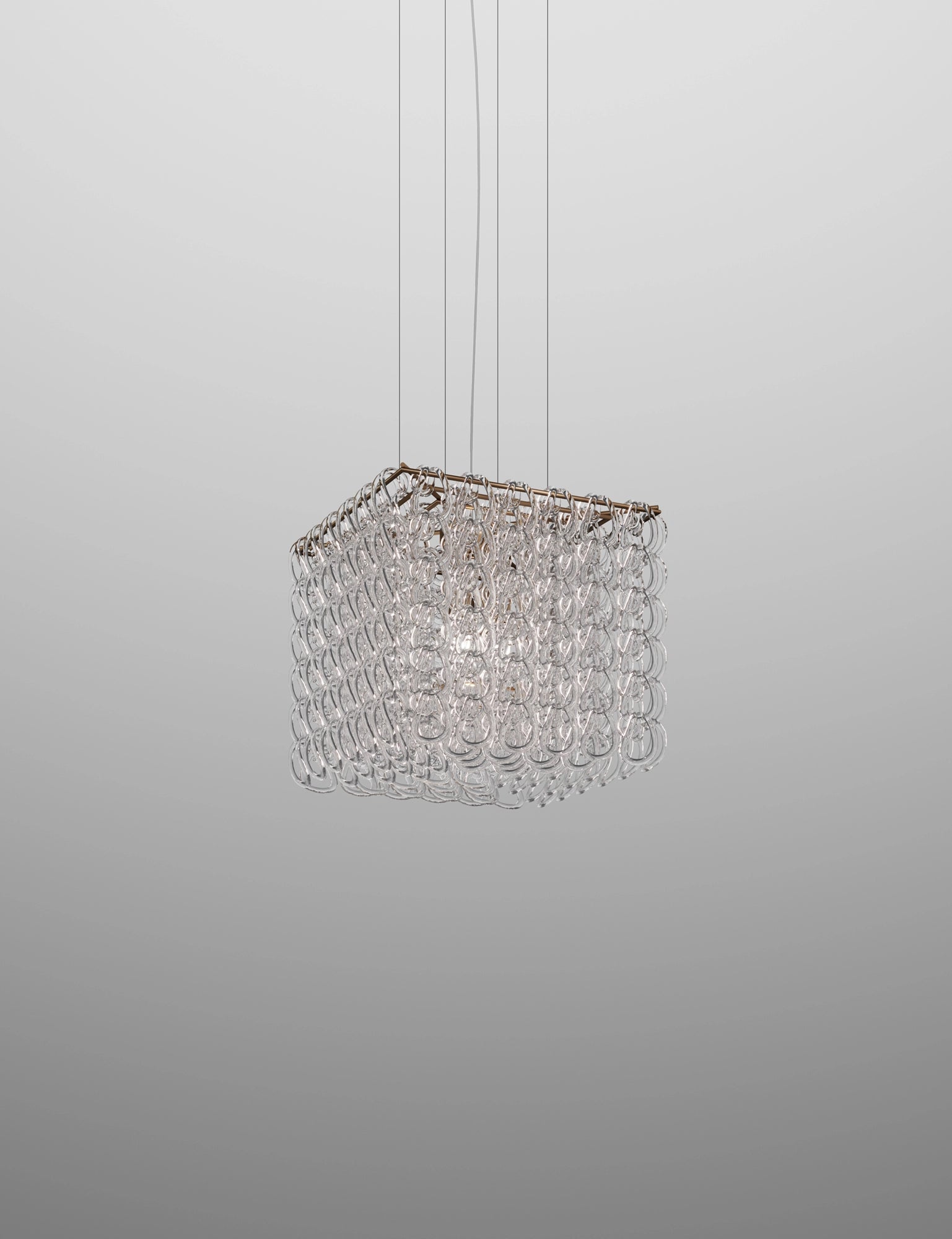 Adored around the world, the iconic Giogali Collection from Vistosi features handmade Murano crystal links that join together to create stunning and dramatic combinations. Designed by Angelo Mangiarotti for Vistosi in 1967, Giogali has since become synonymous with Italian design, featuring in homes and commercial spaces of all sizes across the globe. The Giogali Cube Pendant Light can come with a bronze or chrome frame and a variety of different link colour options.