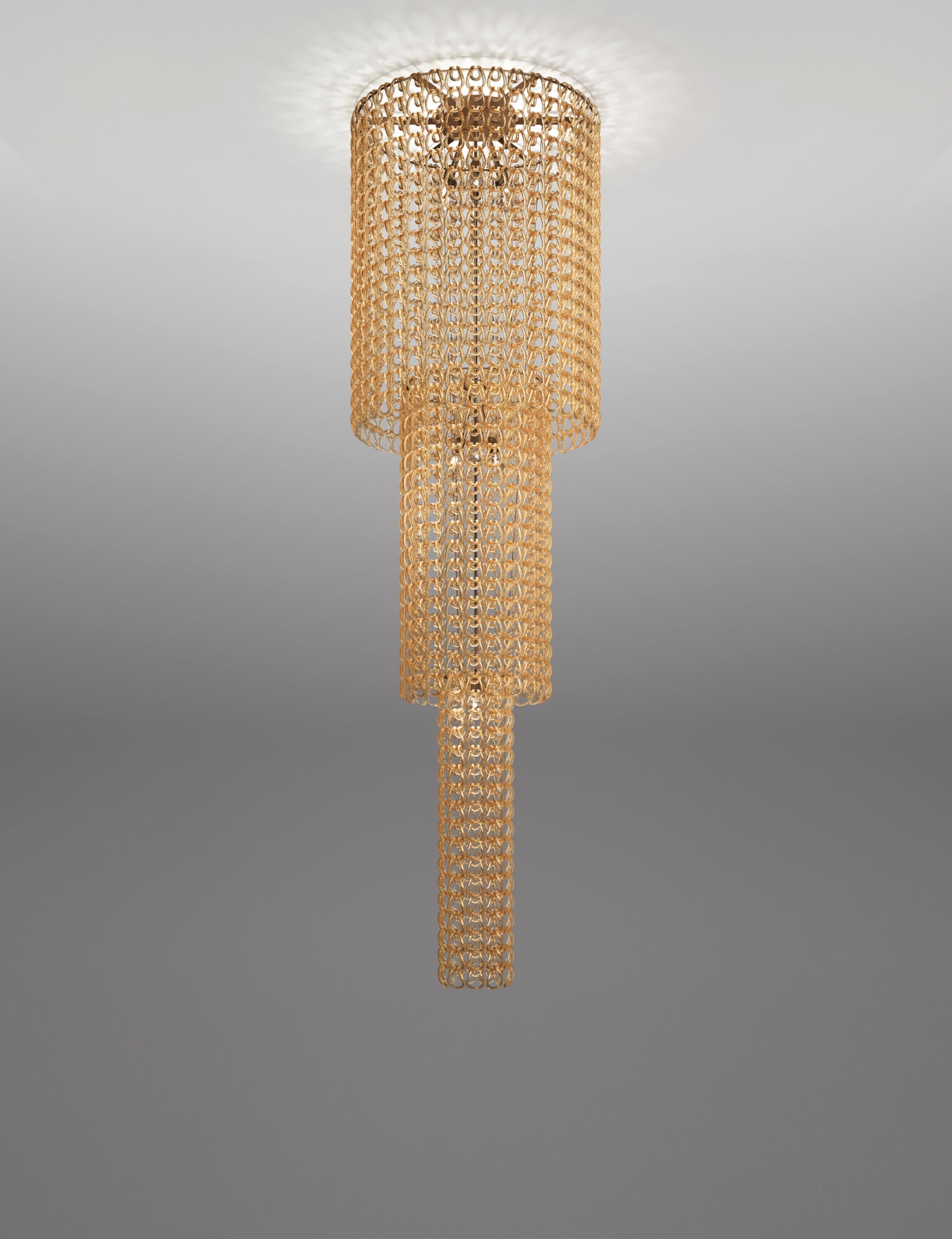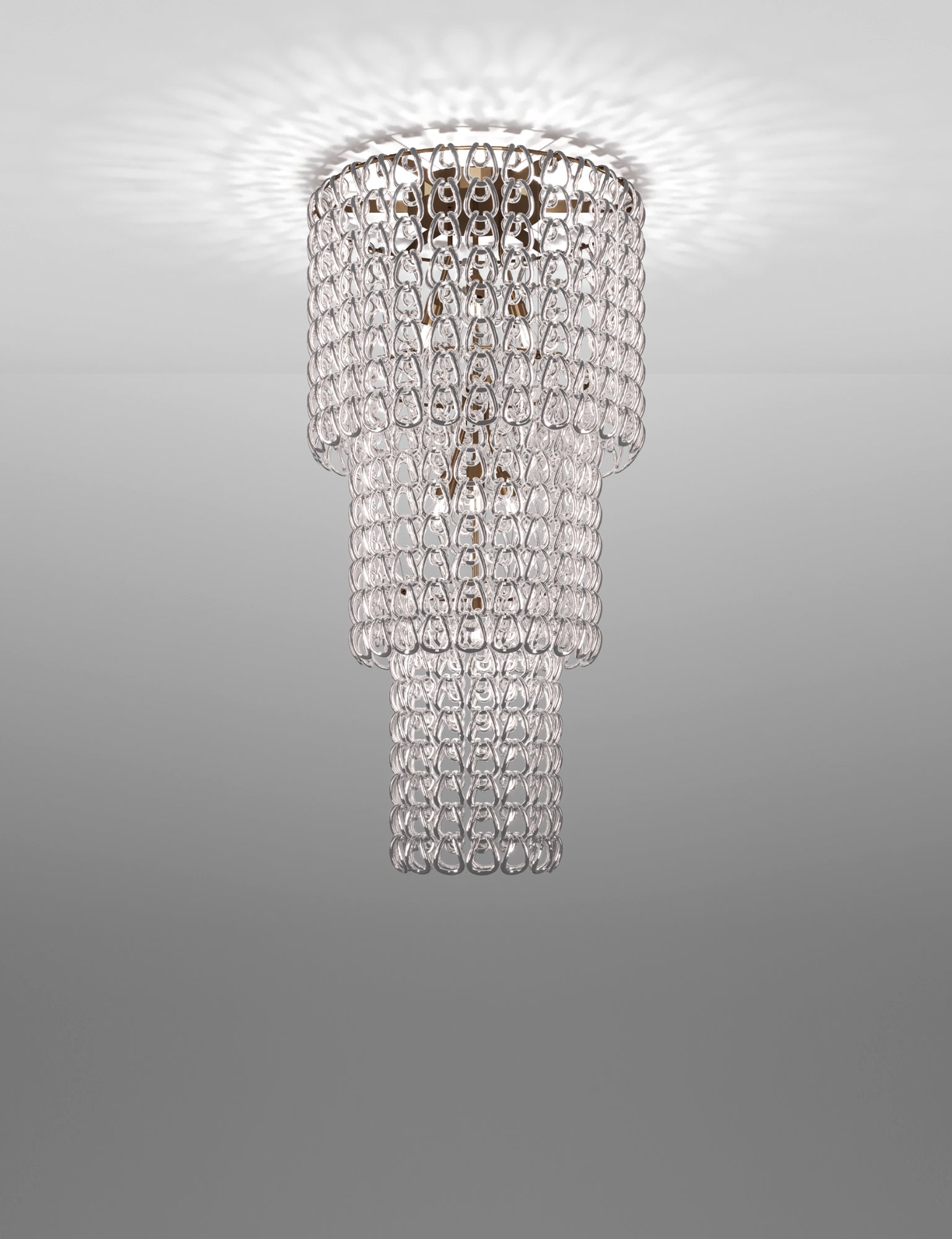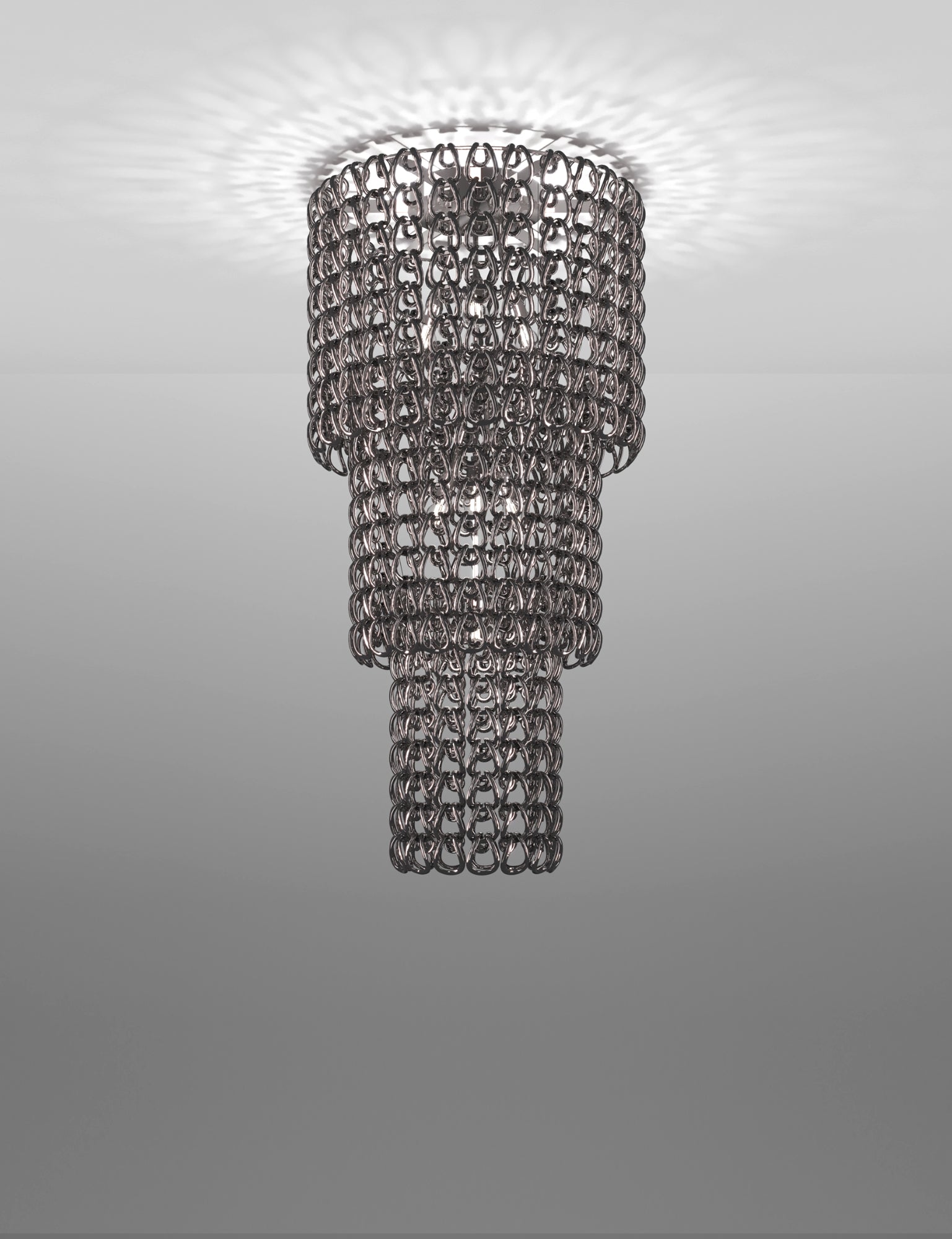 Adored around the world, the iconic Giogali Collection from Vistosi features handmade Murano crystal links that join together to create stunning and dramatic combinations. Designed by Angelo Mangiarotti for Vistosi in 1967, Giogali has since become synonymous with Italian design, featuring in homes and commercial spaces of all sizes across the globe. Comes with a bronze or chrome frame and a variety of different link colour options. The Giogali feature ceiling light is extra large and ideal for feature lighting installations in large-scale commercial projects.