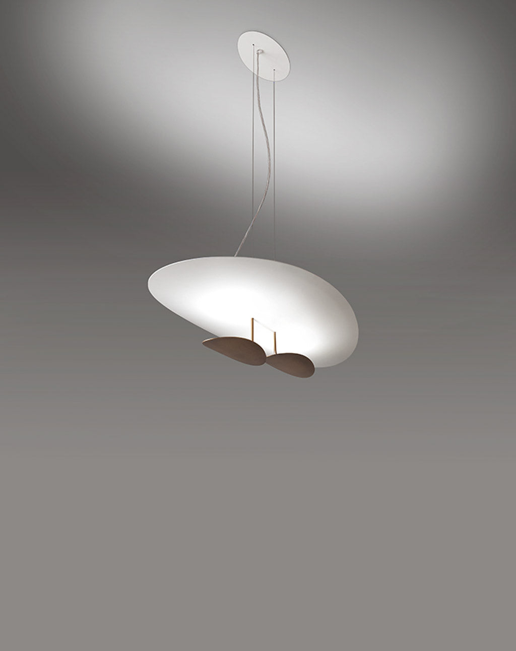 The peculiarity of MASAI is its curved shield on which the light is projected from an oval source. This collection of indirect wall, ceiling and pendant lamps consists of slimline die-cast aluminum profiles with inbuilt LEDs. The simple geometry and essential shape of MASAI creates a clean and sophisticated aesthetic, while its soft indirect lighting produces a comfortable atmosphere. The Masai pendant light is available in two sizes in a variety of finish options. Made in Italy.