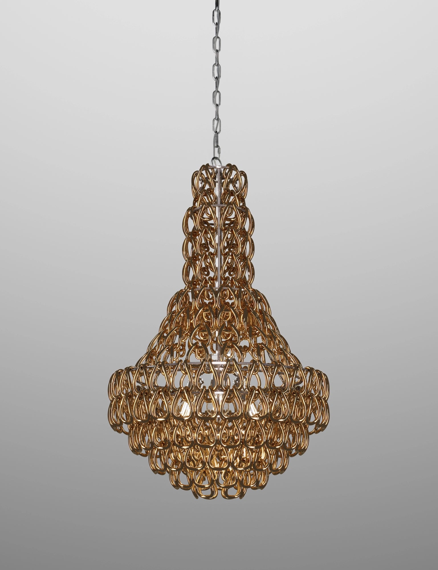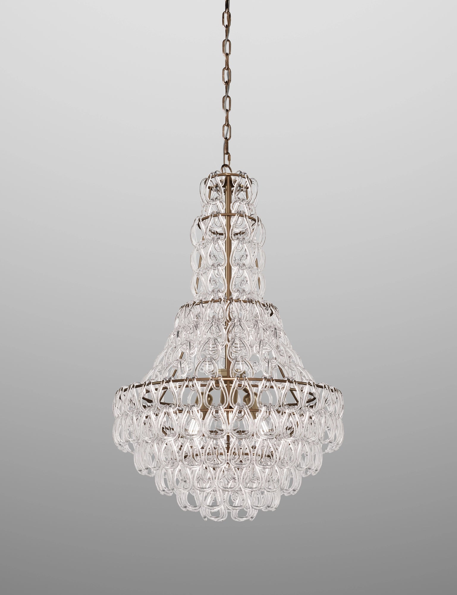 The Minigiogali collection from Vistosi expands Angelo Mangiarotti's classic Giogali range through utilising smaller hand made crystal links, providing additional style options. The Minigiogali Classic Chandelier comes with a bronze or chrome frame and a variety of different link colour options. Ideal for feature lighting installations in residential and commercial projects.