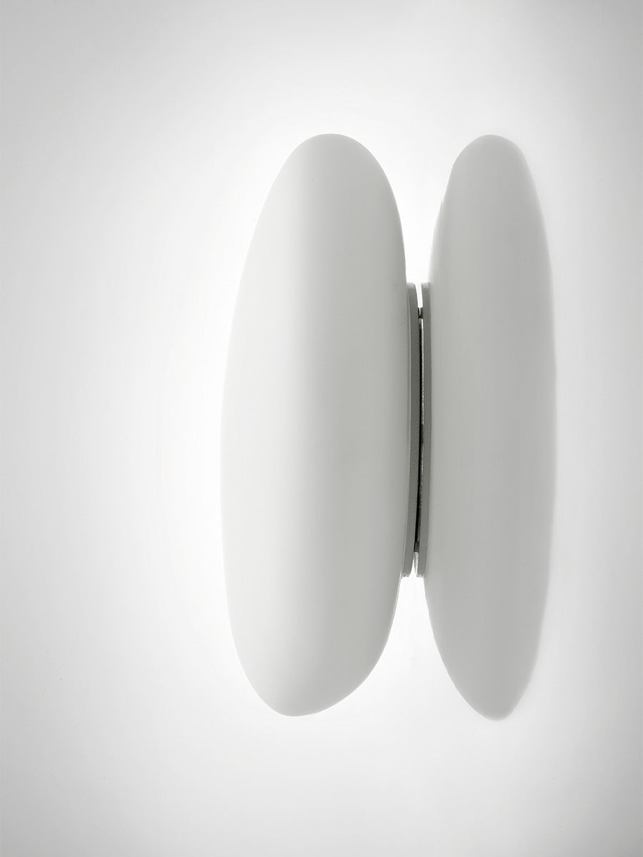 The Neochic collection is inspired by the natural effect that water and wind make on stone. The versatile fitting can be installed on ceilings or walls, while it's unique and simple form of smooth gradients compliments a contemporary setting. Made of mouth blown glass with matt white finish. Available in a variety of sizes. Design by Chiaromonte & Marin for Vistosi.