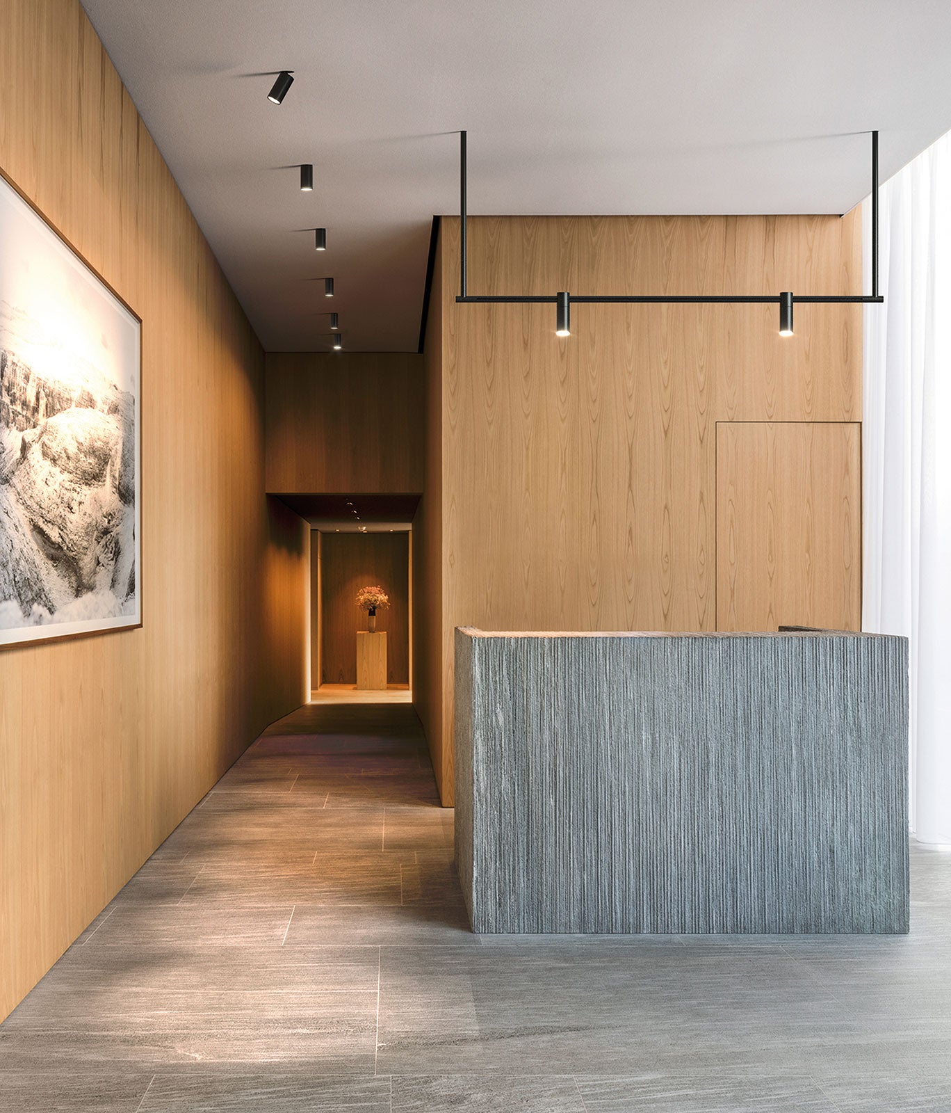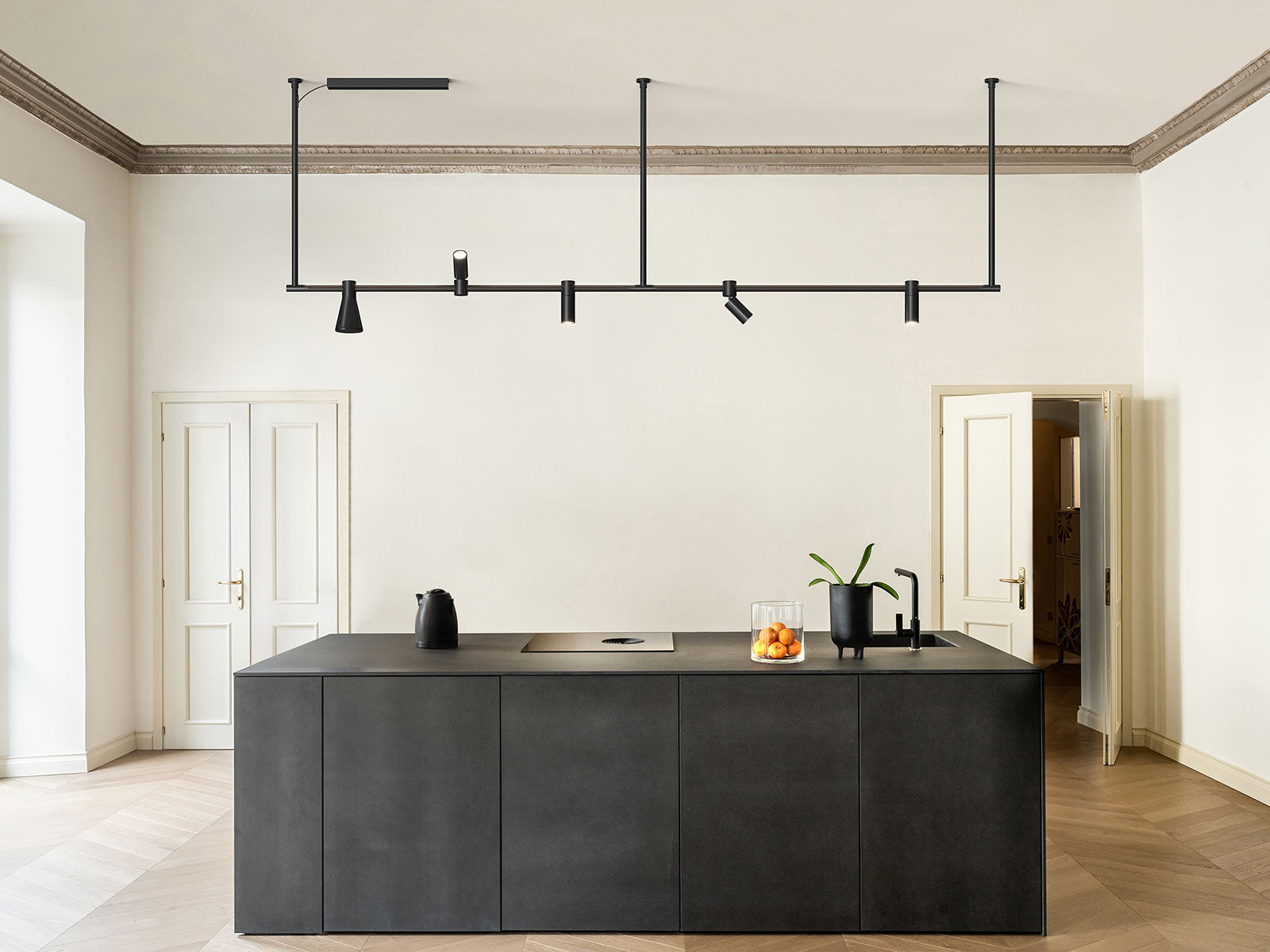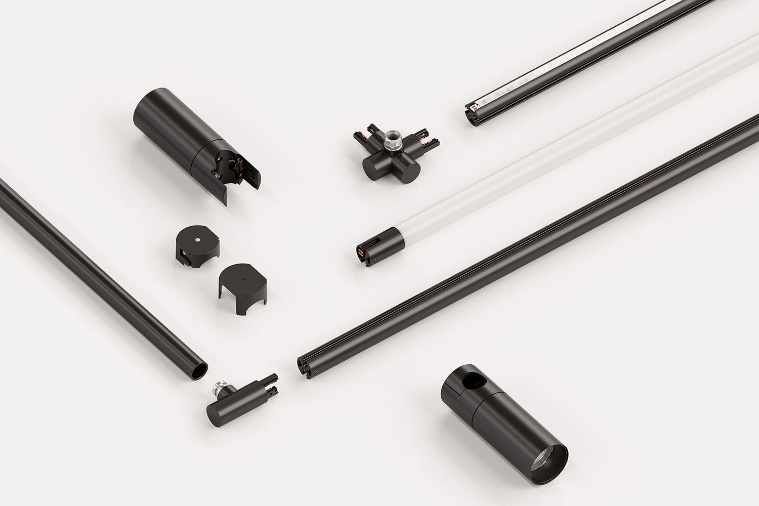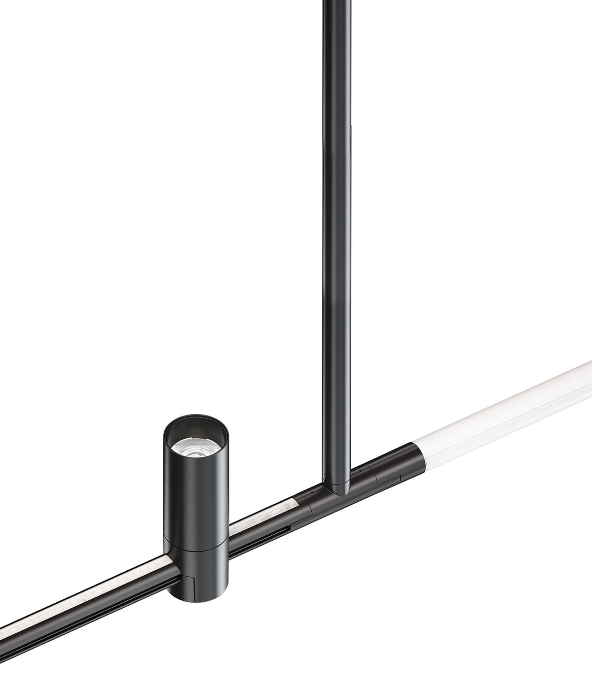 Souvlaki is a low-voltage track system that offers intuitive configuration for both public and residential spaces. Adjustable, non-adjustable, or suspended spots easily attach and slide along the track, customisable with various accessories. Integrated electronics allow smartphone control via DALI protocol, enabling precise adjustments in any position. Linear LED tracks provide indirect lighting and power for projectors. Versatile modular structures can be created without false ceilings, powered from a single source, and enhanced with individual spotlights, offering comprehensive lighting options. Orders by showroom appointment.