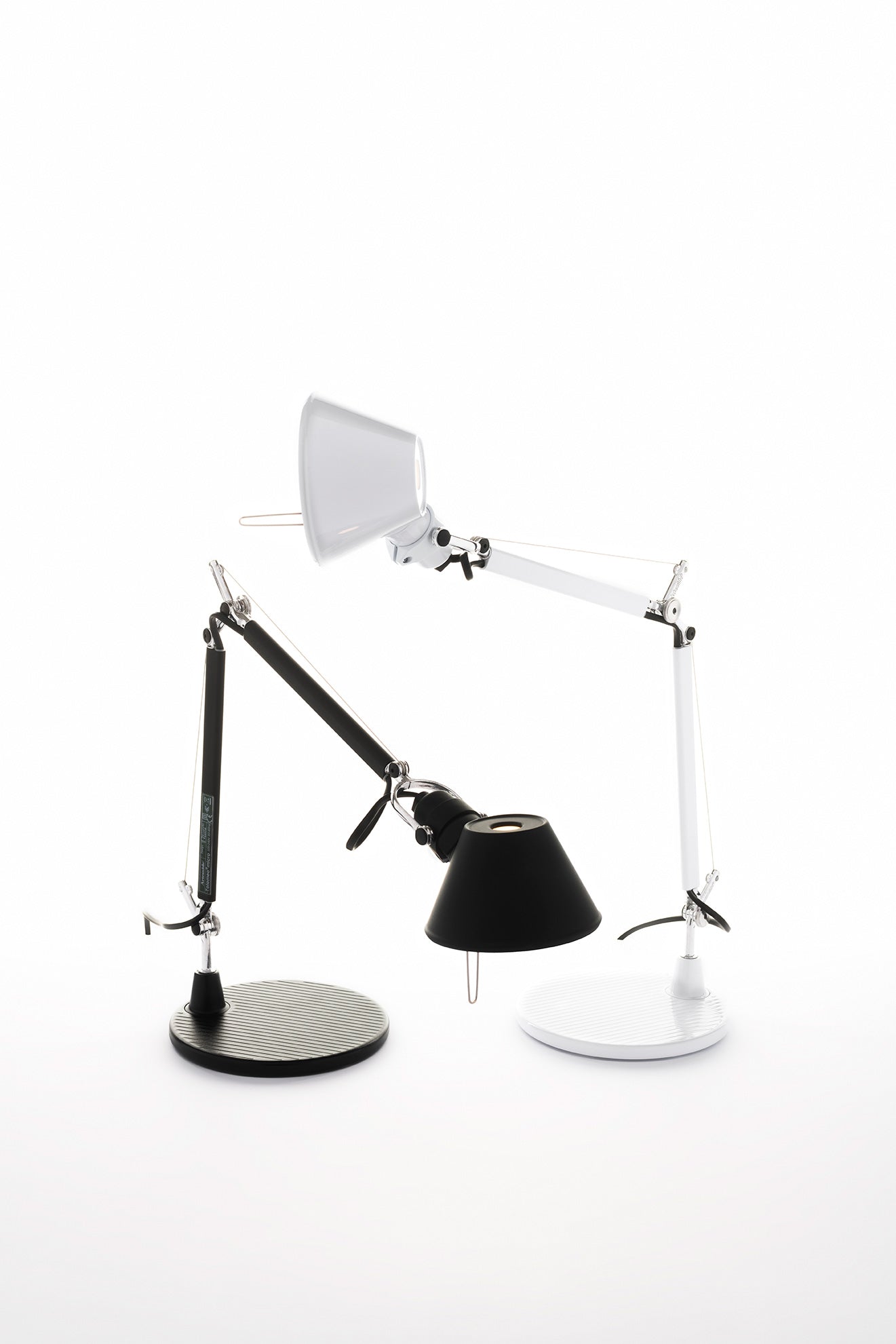 The Tolomeo Micro Table Lamp, designed by Michele De Lucchi and Giancarlo Fassina for Artemide, was originally launched in 1987. This iconic table lamp combines sleek, minimalist lines with exceptional functionality. Crafted from lightweight and robust aluminum, the Tolomeo Micro features an adjustable arm and head, allowing for precise light direction. It has received numerous international awards, including the prestigious Compasso d'Oro in 1989. Available in a variety of finish options, it adds a touch of elegance and modernity to any space.